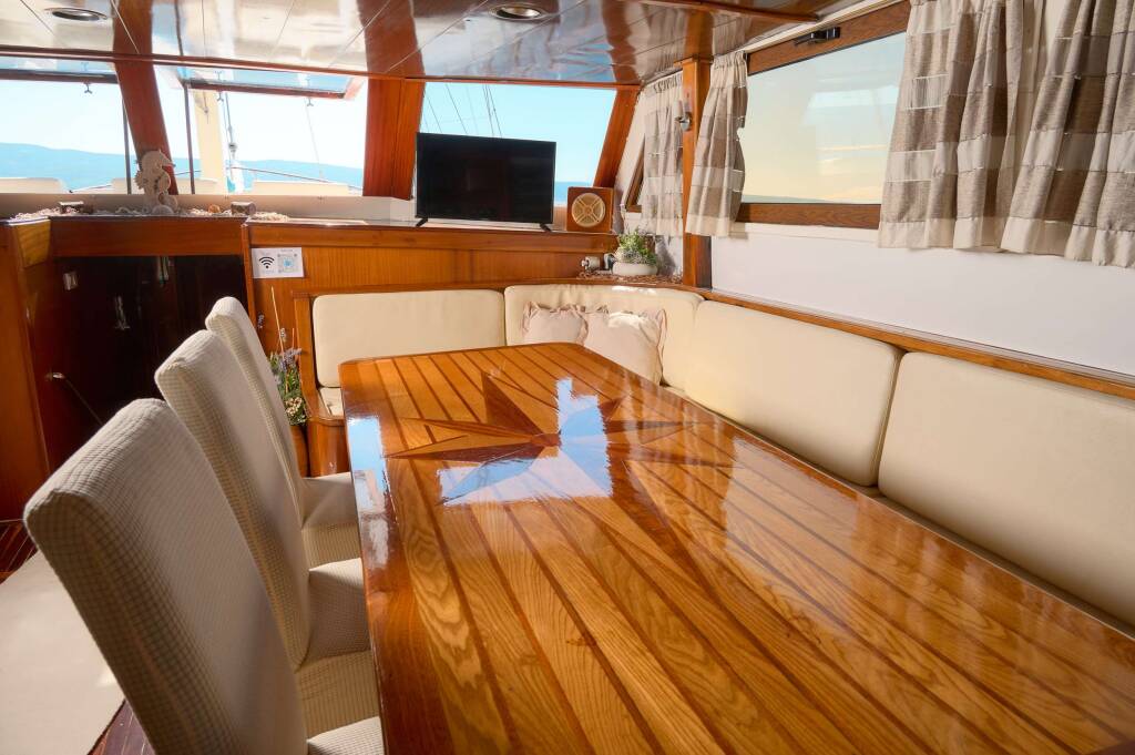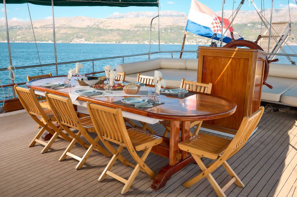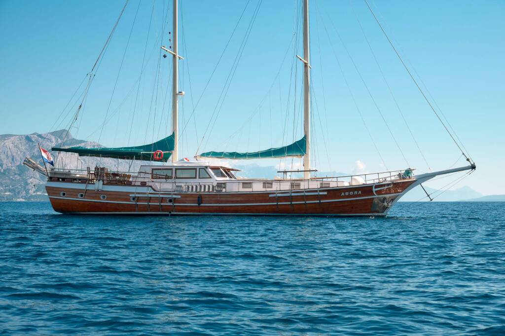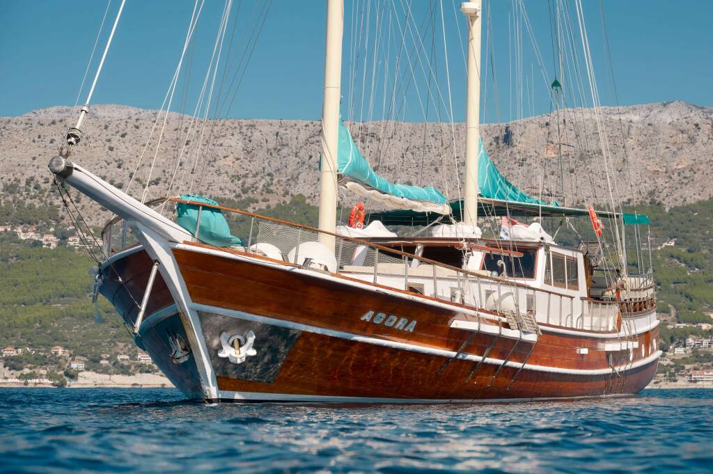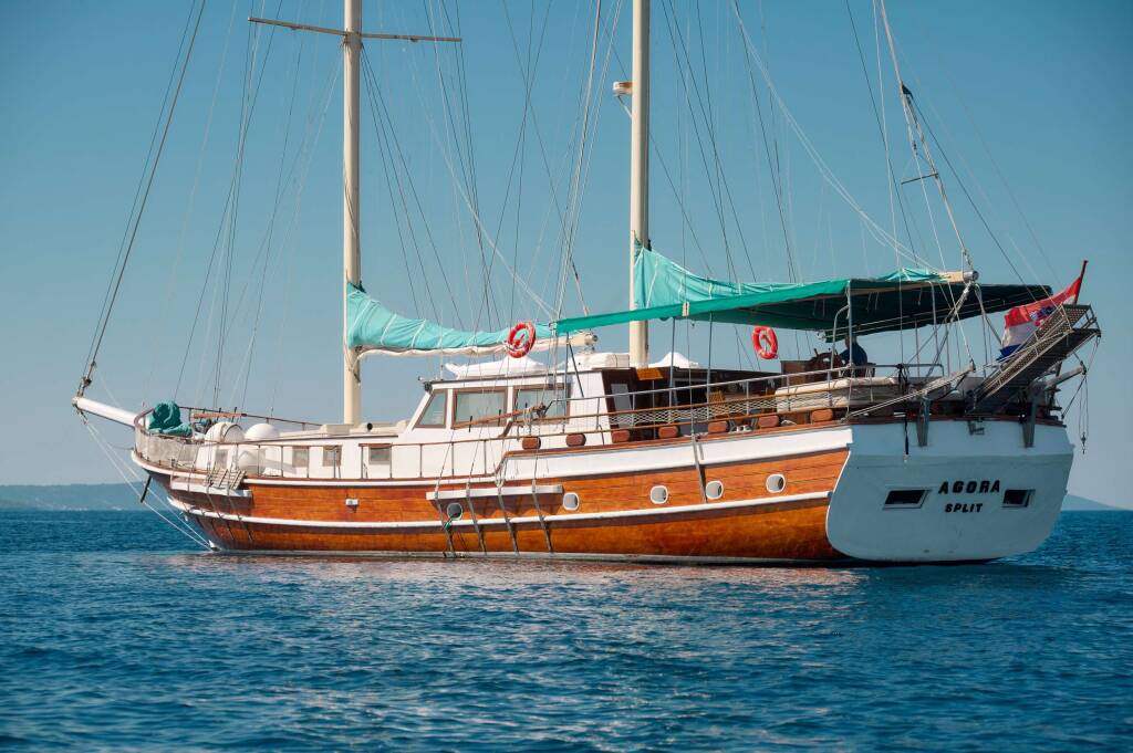 Gulet & Motorsailer AGORA, Baujahr 2002, liegt vor Anker in Croatia, Adriatic Sea. Sie verfügt über 6 Kabinen und bietet Platz für 12 Personen.