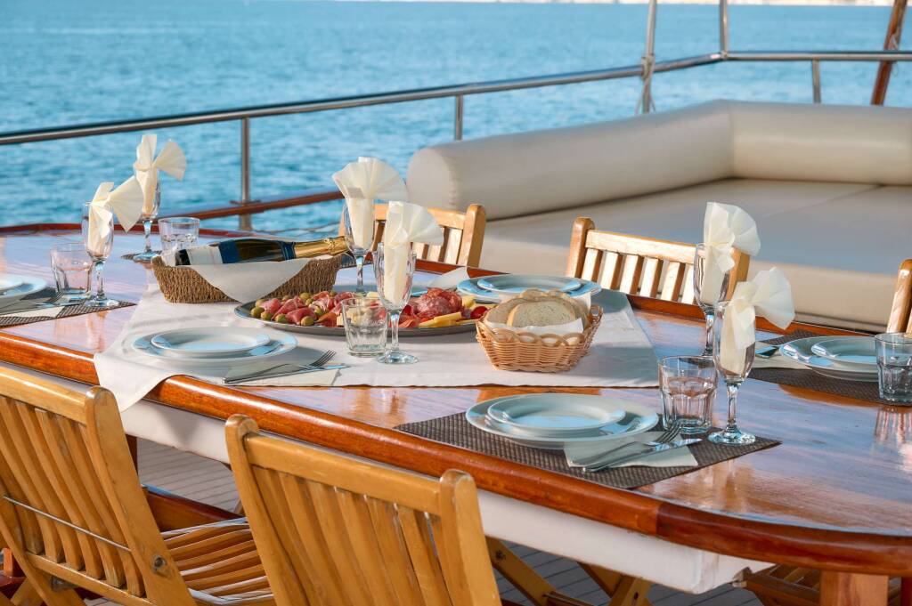 - Drinks/beverages are to be taken from the yacht bar and paid for according to consumption (in cash at the end of the cruise)