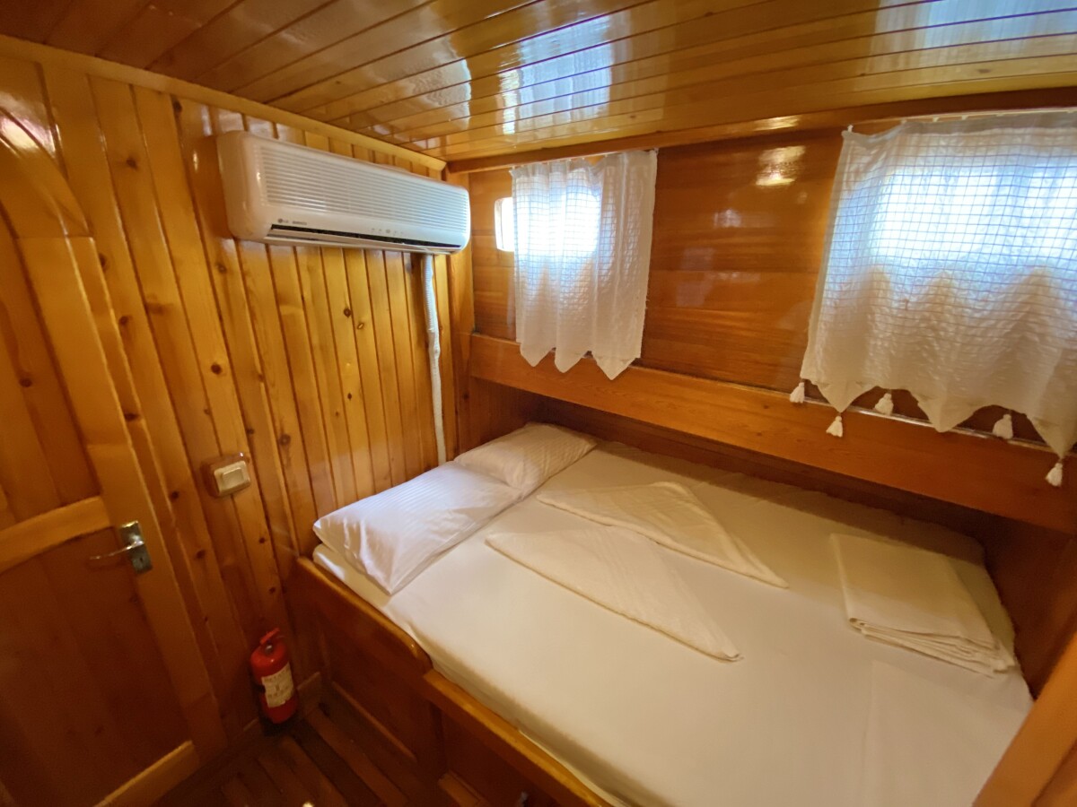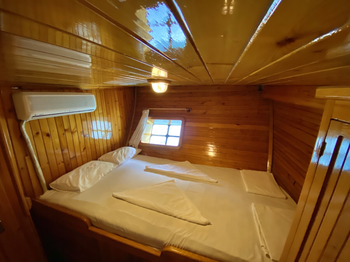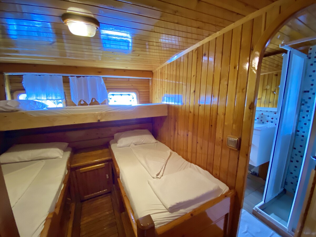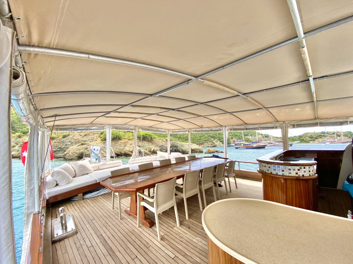 Bluefest ist eine 27 Meter lange, traditionelle Gulet, die Yachtcharter entlang der Süd- und Südwestküste der Türkischen Riviera anbietet. Die türkische Küste besticht durch ihren zeitlosen Charme. Die karische und lykische Küste bietet Besuchern eine Fülle an Sehenswürdigkeiten, kulinarischen Genüssen und kristallklarem, blauem Meer. Von dicht bewaldeten Hügeln bis hin zu luxuriösen Sandbuchten mit türkisfarbenem Wasser und von pinienbewachsenen Inseln bis zu lebhaften, farbenfrohen Hafenstädten – in diesem Teil des Mittelmeers finden Sie ruhige und entspannte Ankerplätze. Die Gulet bietet Platz für bis zu 18 Gäste in sieben klimatisierten Doppelkabinen und zwei klimatisierten Dreibettkabinen. Alle Kabinen verfügen über ein eigenes Bad, komfortable Betten und Stauraum. Der großzügige Innen- und Deckbereich der Yacht sorgt für Komfort an Bord. Ein gemütlich gestalteter Salon mit offener Küche und kleiner Bar lädt zum Verweilen im Schatten und zum Genießen der Kreuzfahrt ein. Das Achterdeck bietet einen geräumigen Sitz- und Essbereich für Mahlzeiten im Freien. Die großzügige Liegefläche am Heck lädt zum Entspannen nach dem Essen oder einfach zum Verweilen und Genießen der Aussicht im Schatten ein. Mittschiffs befindet sich eine leicht erhöhte Sonnenliegefläche, die ungestörten Blick in die Sonne ermöglicht. Für alle, die sich mit Blick auf die wunderschöne Landschaft zurücklehnen möchten, sind optional Sonnenschirme erhältlich. Eine lange Sitzbank mit Blick auf den Bug der Gulet bietet die Möglichkeit, die Aussicht während der Küstenfahrt zu genießen. Die professionell ausgebildete und freundliche Crew der Gulet steht Ihnen jederzeit an Bord zur Verfügung und wahrt diskret Ihre Privatsphäre. Sie haben die Gelegenheit, die köstlichen Gerichte der mediterranen und internationalen Küche sowie die Spezialrezepte Ihres Küchenchefs zu probieren.