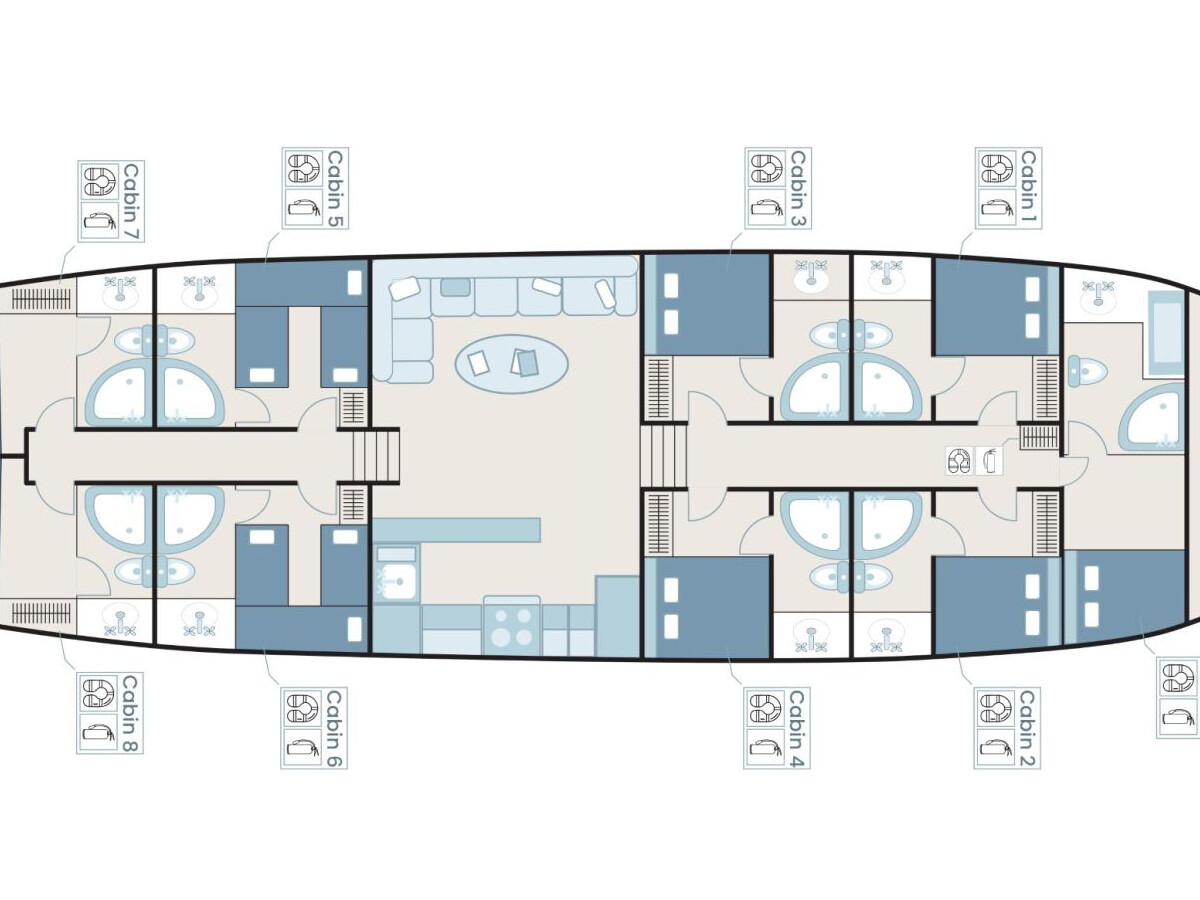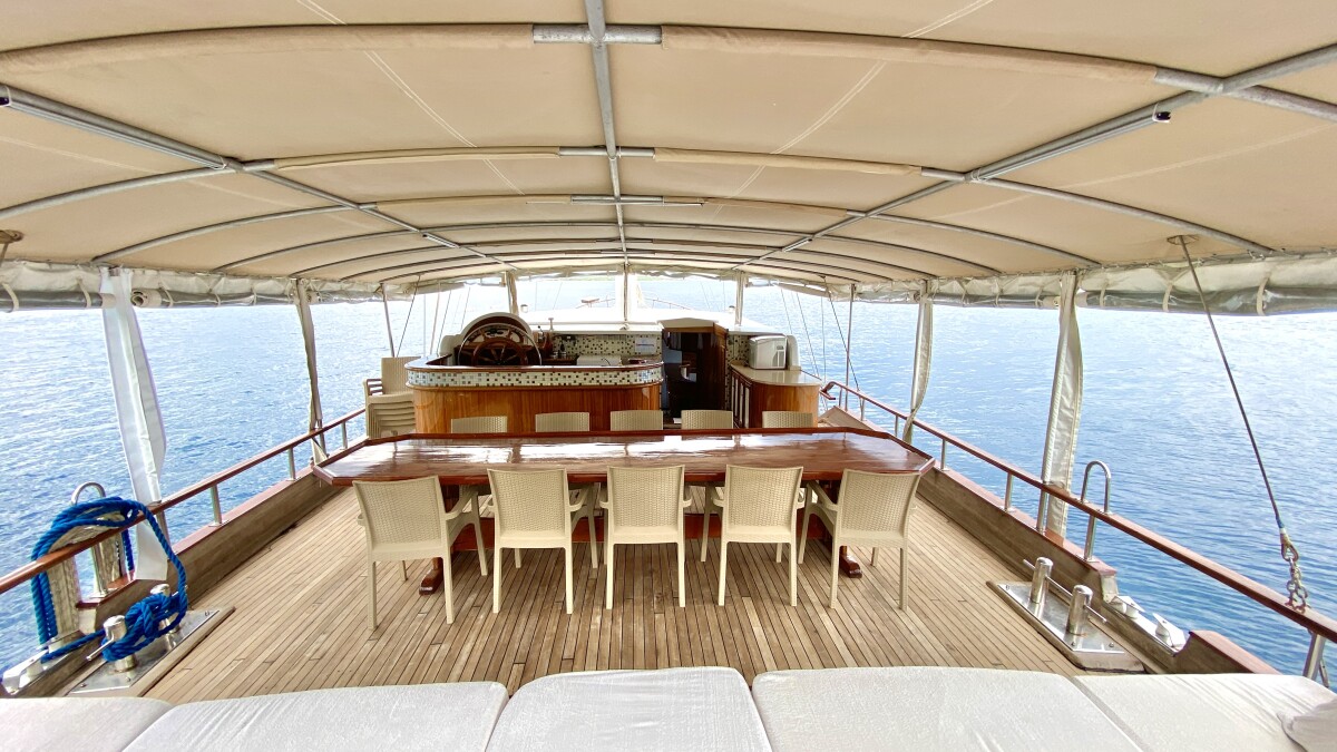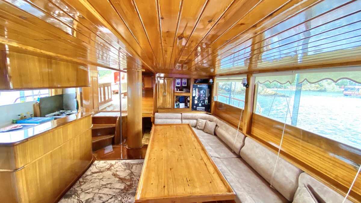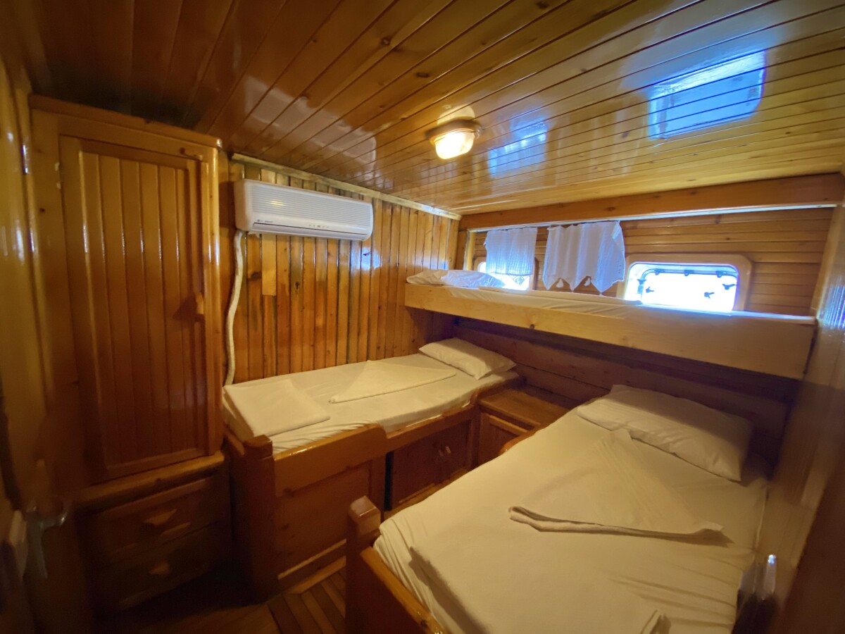 Bluefest ist eine 27 Meter lange, traditionelle Gulet, die Yachtcharter entlang der Süd- und Südwestküste der Türkischen Riviera anbietet. Die türkische Küste besticht durch ihren zeitlosen Charme. Die karische und lykische Küste bietet Besuchern eine Fülle an Sehenswürdigkeiten, kulinarischen Genüssen und kristallklarem, blauem Meer. Von dicht bewaldeten Hügeln bis hin zu luxuriösen Sandbuchten mit türkisfarbenem Wasser und von pinienbewachsenen Inseln bis zu lebhaften, farbenfrohen Hafenstädten – in diesem Teil des Mittelmeers finden Sie ruhige und entspannte Ankerplätze. Die Gulet bietet Platz für bis zu 18 Gäste in sieben klimatisierten Doppelkabinen und zwei klimatisierten Dreibettkabinen. Alle Kabinen verfügen über ein eigenes Bad, komfortable Betten und Stauraum. Der großzügige Innen- und Deckbereich der Yacht sorgt für Komfort an Bord. Ein gemütlich gestalteter Salon mit offener Küche und kleiner Bar lädt zum Verweilen im Schatten und zum Genießen der Kreuzfahrt ein. Das Achterdeck bietet einen geräumigen Sitz- und Essbereich für Mahlzeiten im Freien. Die großzügige Liegefläche am Heck lädt zum Entspannen nach dem Essen oder einfach zum Verweilen und Genießen der Aussicht im Schatten ein. Mittschiffs befindet sich eine leicht erhöhte Sonnenliegefläche, die ungestörten Blick in die Sonne ermöglicht. Für alle, die sich mit Blick auf die wunderschöne Landschaft zurücklehnen möchten, sind optional Sonnenschirme erhältlich. Eine lange Sitzbank mit Blick auf den Bug der Gulet bietet die Möglichkeit, die Aussicht während der Küstenfahrt zu genießen. Die professionell ausgebildete und freundliche Crew der Gulet steht Ihnen jederzeit an Bord zur Verfügung und wahrt diskret Ihre Privatsphäre. Sie haben die Gelegenheit, die köstlichen Gerichte der mediterranen und internationalen Küche sowie die Spezialrezepte Ihres Küchenchefs zu probieren.