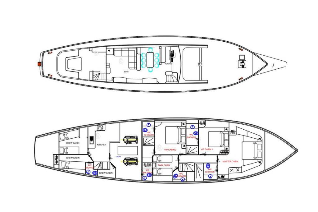Accommodation: -Saloon with A/C, TV, bar, lounge, dining area for 8 guests