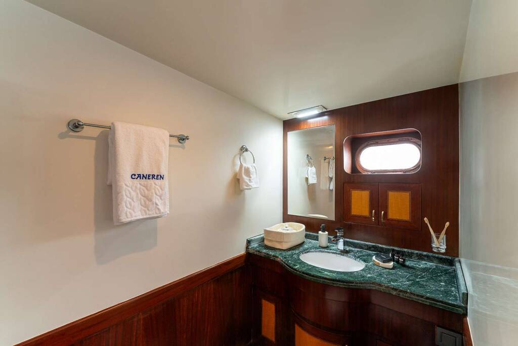 Gulet & Motorsailer Caneren, Baujahr 1996, liegt vor Anker in Turkey. Sie verfügt über 4 Kabinen und bietet Platz für 8 Personen.