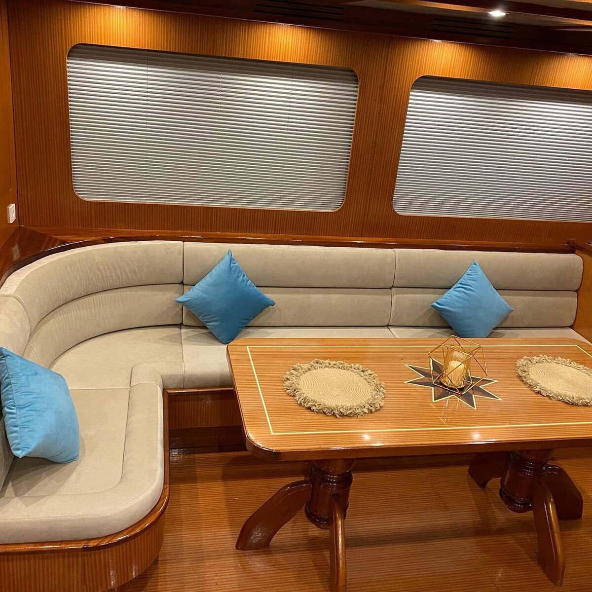 Sie vereint traditionelle Gulet-Bauweise mit modernem Komfort und bietet großzügige Decksflächen zum Essen im Freien, Sonnenbaden und Entspannen im Schatten sowie einen stilvollen Salon und Essbereich.