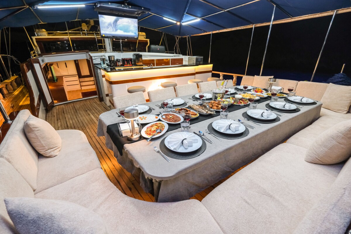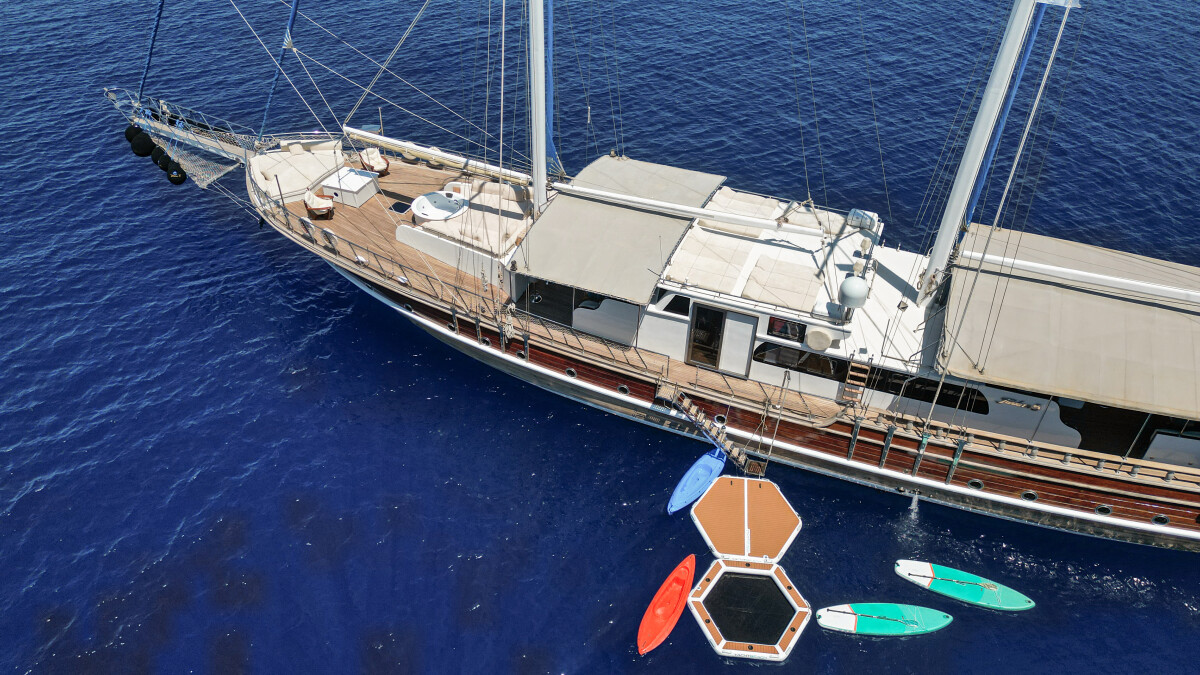Sie vereint traditionelle Gulet-Bauweise mit modernem Komfort und bietet großzügige Decksflächen zum Essen im Freien, Sonnenbaden und Entspannen im Schatten sowie einen stilvollen Salon und Essbereich. Ein Whirlpool an Deck sorgt für zusätzlichen Komfort und Entspannung.