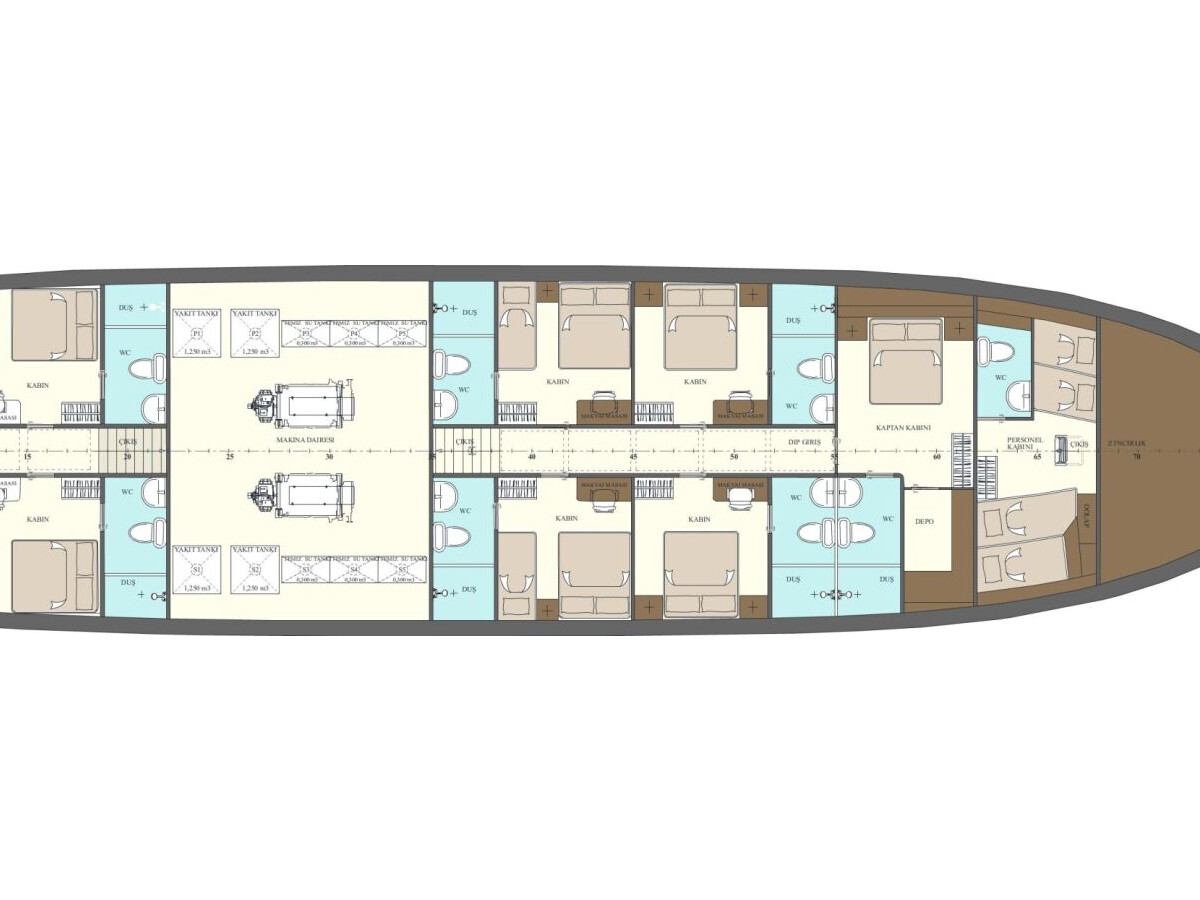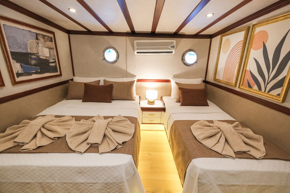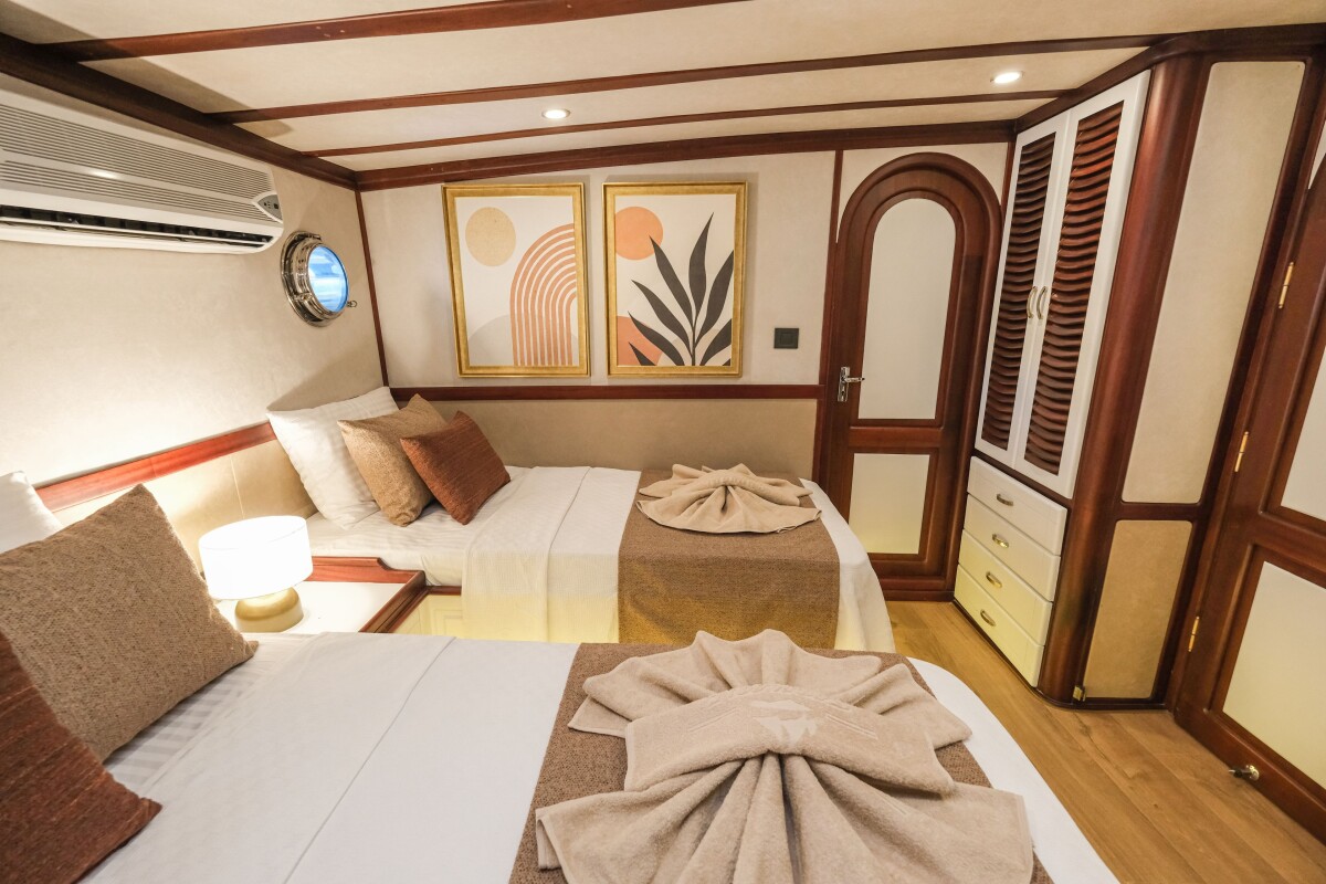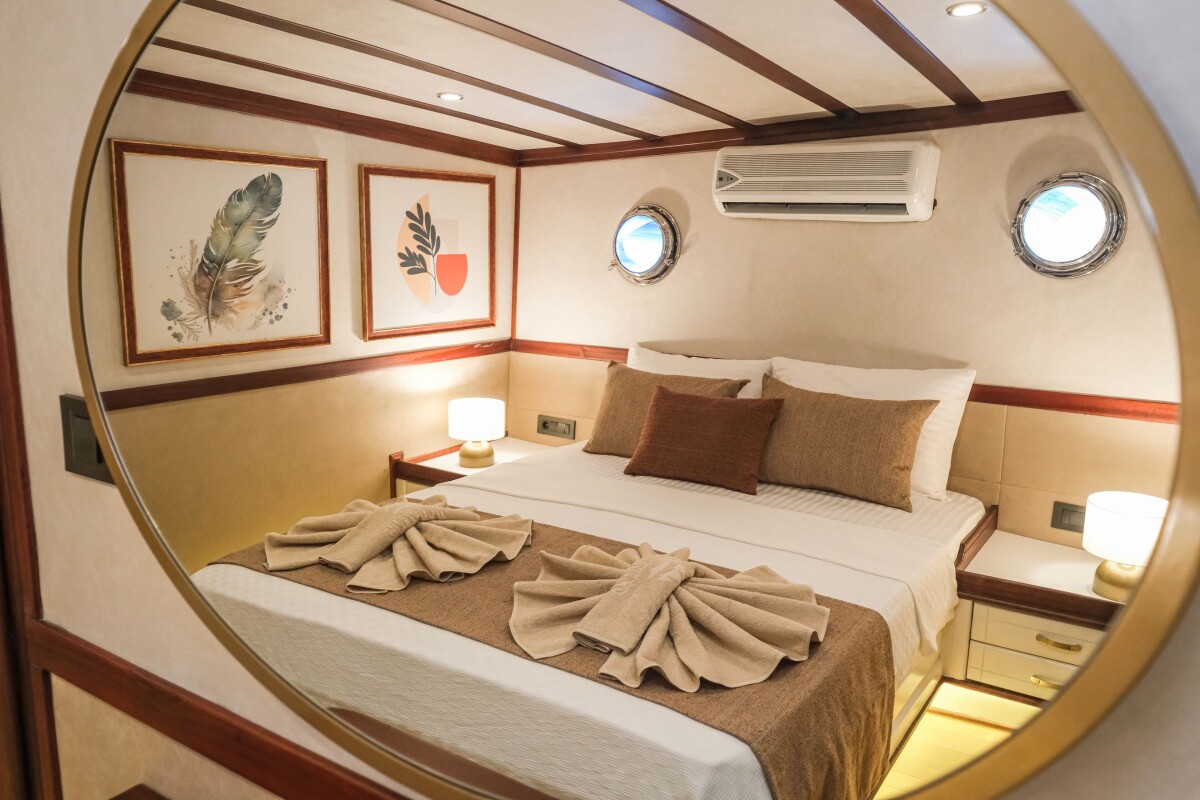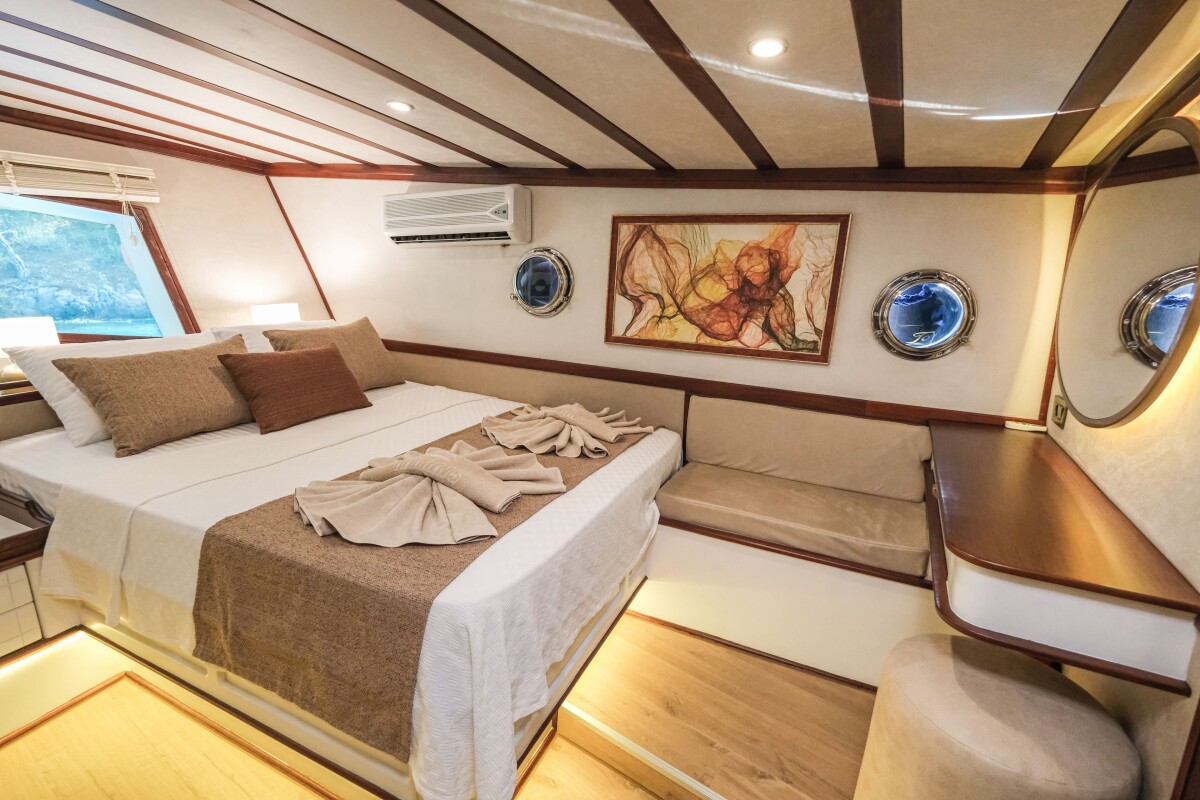Die luxuriöse Gulet Tarkan 5 bietet Platz für bis zu 18 Gäste in 8 voll ausgestatteten, klimatisierten Kabinen: