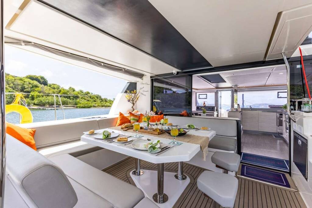 Accommodation: With comfortable cabins, private showers, and an open layout, this Leopard 50 luxury catamaran in the pristine British Virgin Islands is the ultimate setting to truly unwind. Enjoy nutritious, mouthwatering cuisine at the spacious onboard dining table. Sip coffee and fresh juice in the morning, and cocktails, beer, and wine in the evening.