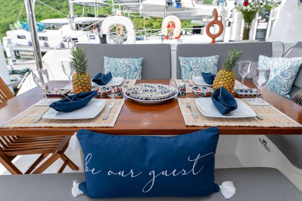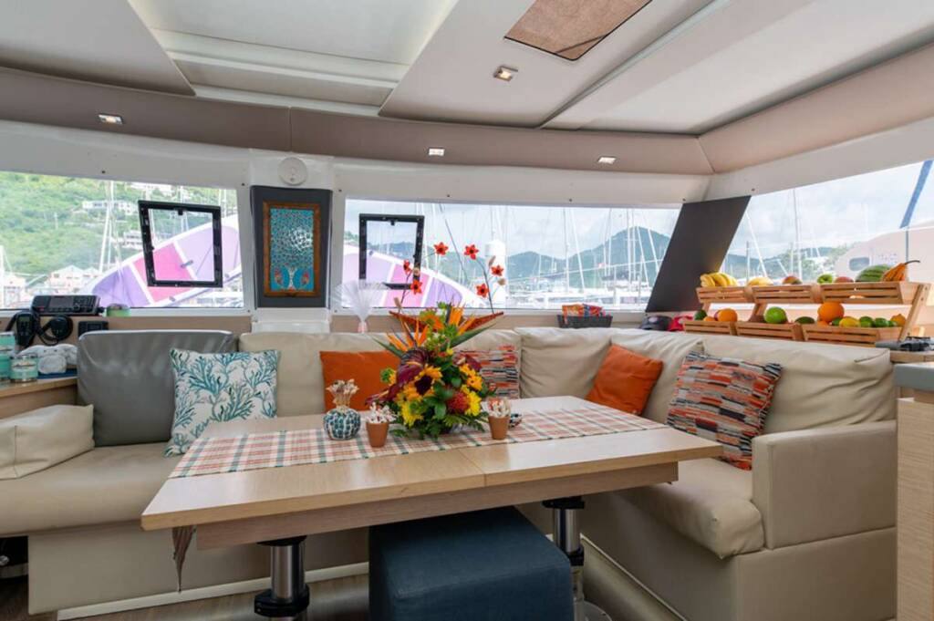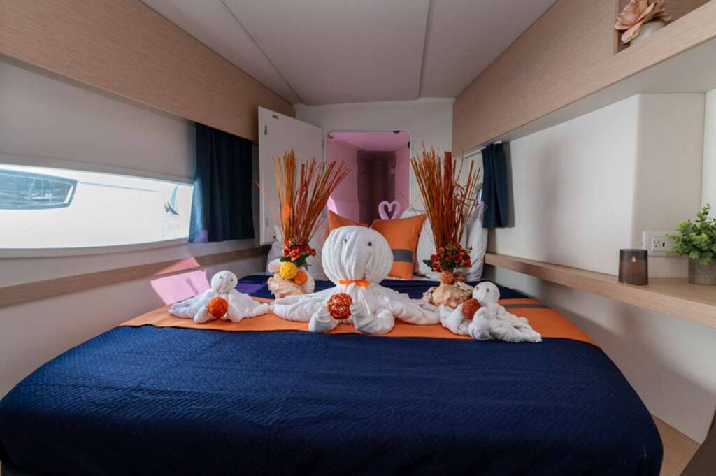 Luxus-Crew-Katamaran ABUNDANCE, Baujahr 2019, liegt vor Anker in Caribbean Virgin Islands (BVI). Sie verfügt über 2 Kabinen und bietet Platz für 4 Personen.