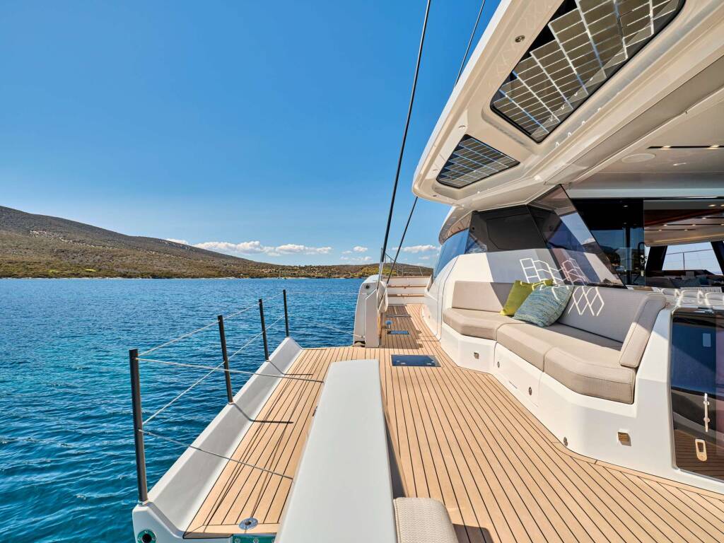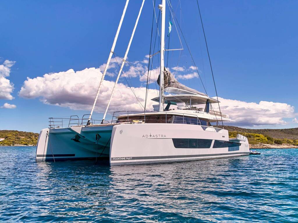 Luxus-Crew-Katamaran AD ASTRA 80, Baujahr 2024, liegt vor Anker in Greece. Sie verfügt über 5 Kabinen und bietet Platz für 10 Personen.