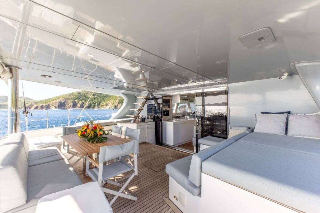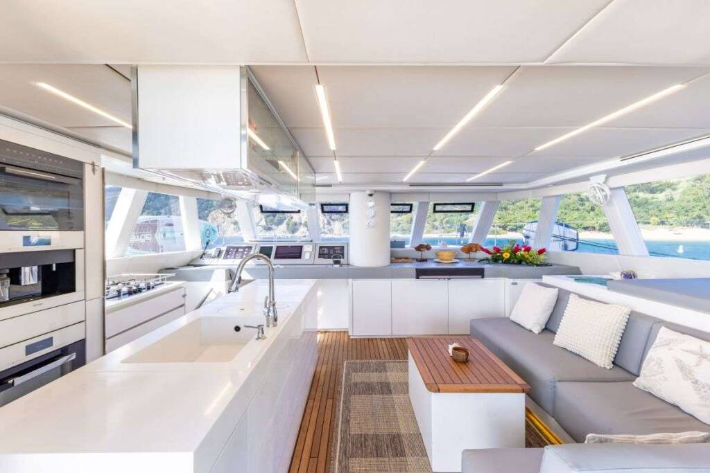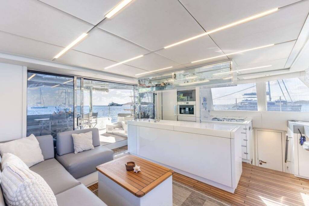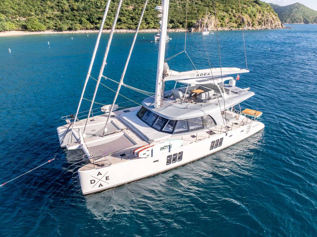 Luxus-Crew-Katamaran ADEA, Baujahr 2017, liegt vor Anker in Caribbean Leewards, Caribbean Windwards. Sie verfügt über 4 Kabinen und bietet Platz für 8 Personen.