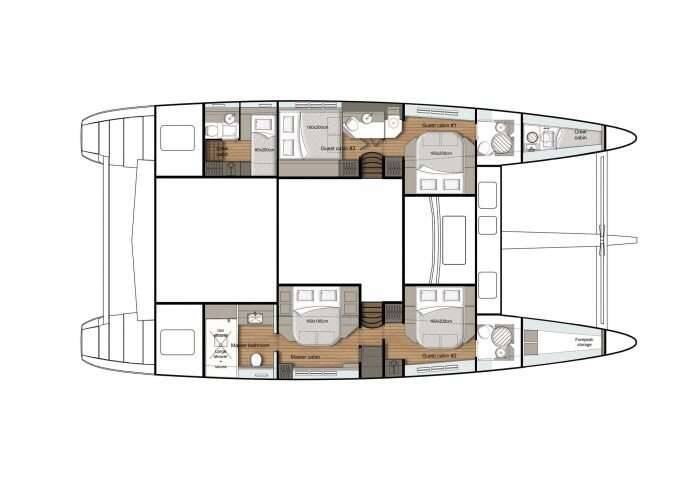 Accommodation: **The crew cabins are aft port side and forepeak.