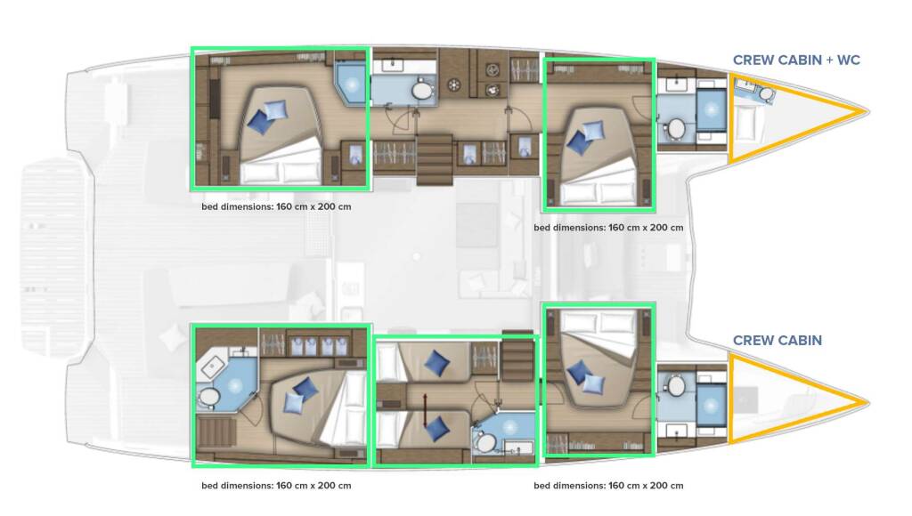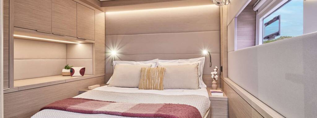 Luxus-Crew-Katamaran ADRIATIC PEARL, Baujahr 2026, liegt vor Anker in Croatia. Sie verfügt über 5 Kabinen und bietet Platz für 10 Personen.