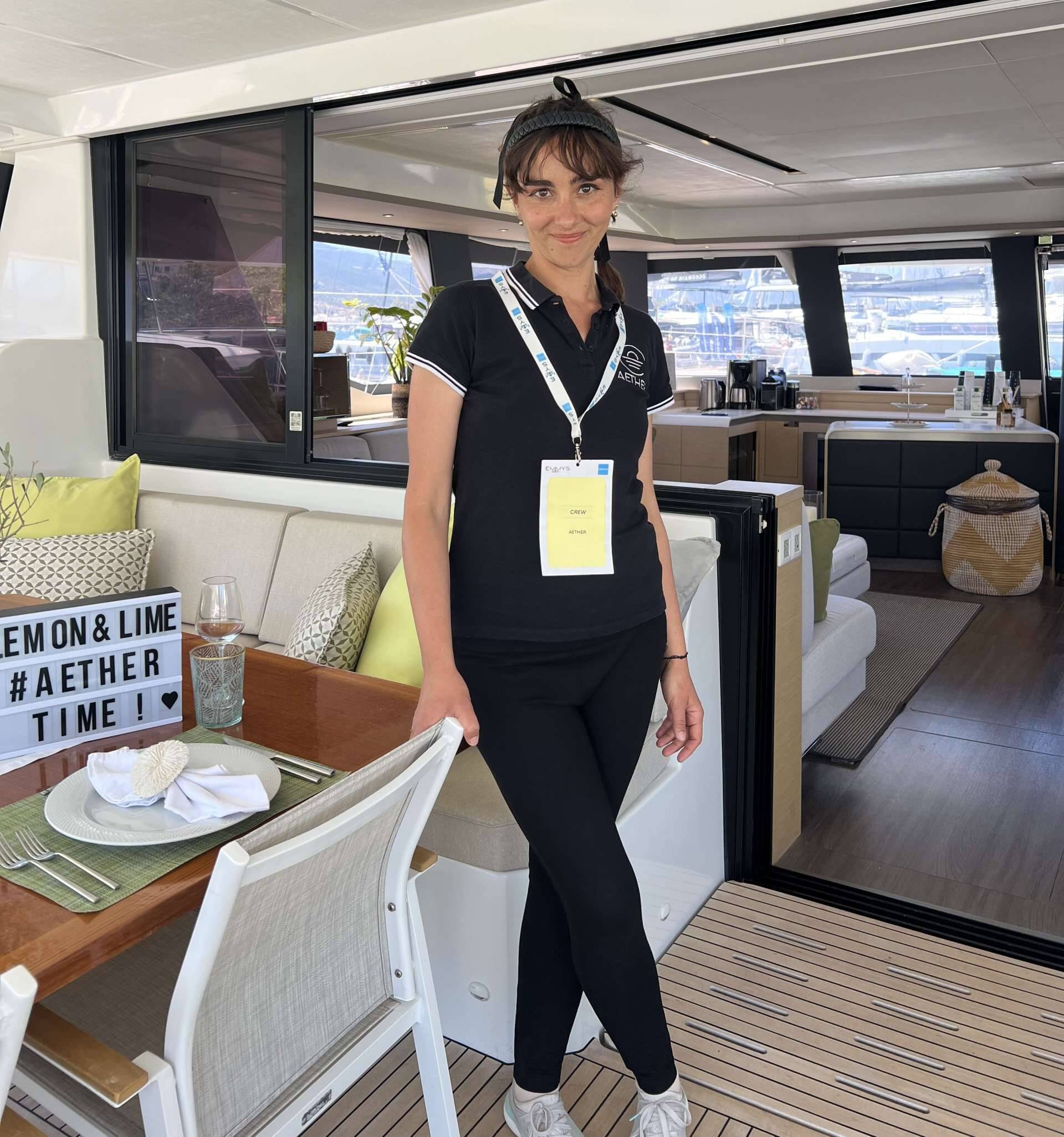 Raluca, born in Romania in 1982, brings a wealth of diverse experiences to her role as the stewardess/deckhand aboard AETHER. With a degree in Journalism, she seamlessly transitioned into customer service roles across various cafes, restaurants, and hotels since 2006. Her most recent venture took her to the picturesque waters of Santorini, where she served as a hostess on a catamaran.