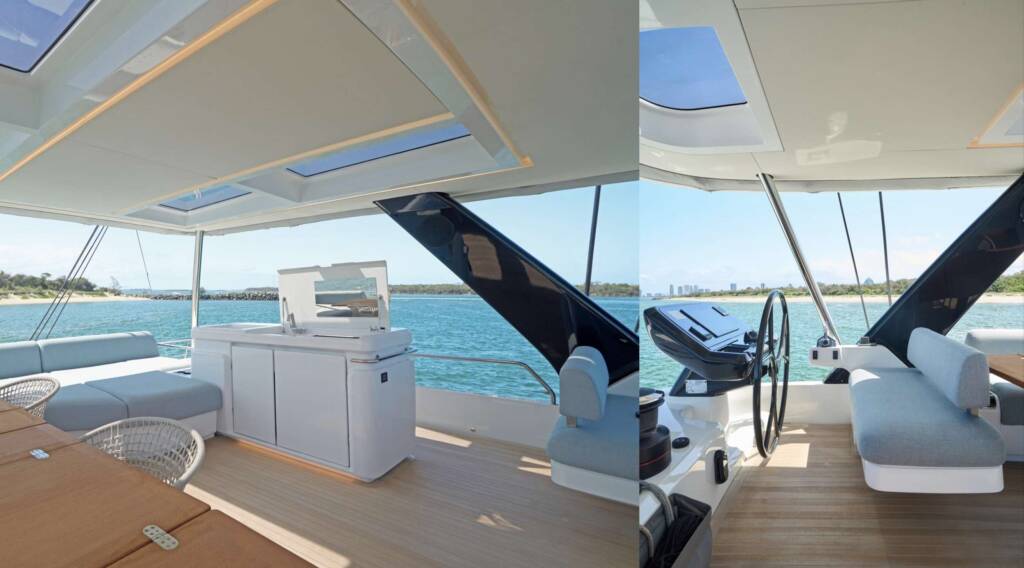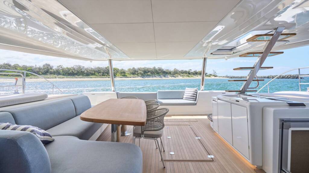 Luxus-Crew-Katamaran AMAREA, Baujahr 2026, liegt vor Anker in Greece. Sie verfügt über 4 Kabinen und bietet Platz für 8 Personen.