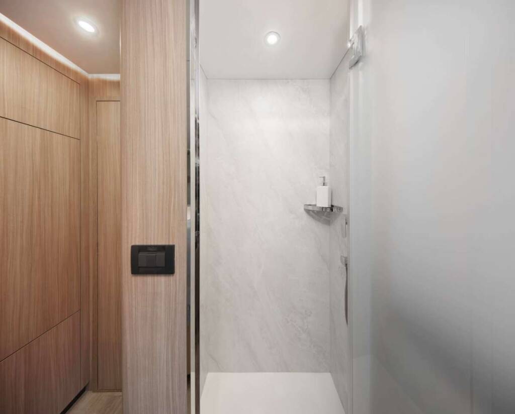 Accommodation: 5 queen cabins with en suite bathrooms for guests. 2 additional single forepeaks with own bathroom for guests. The crew uses the aft cabin with 2 separate twin beds. All main interior cabins have electric freshwater flush toilets and US electrical outlets.