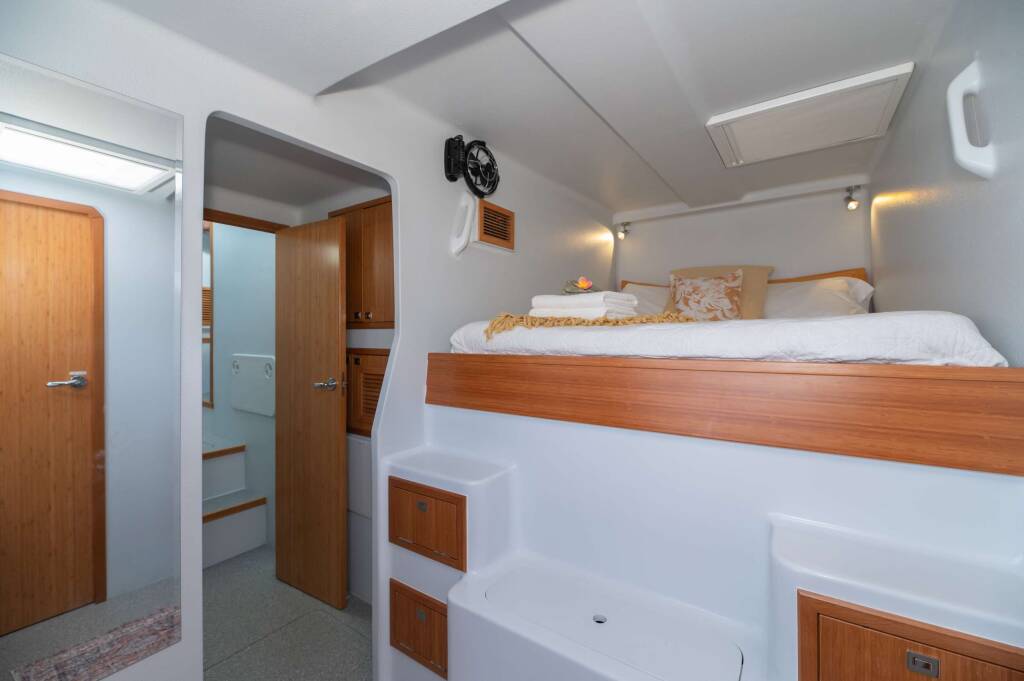 Olivia has two degrees: a Bachelor of Biological Science specializing in Marine Science and a Bachelor of Arts, with a double major in Spanish and Geography. She is a keen water woman who enjoys surfing and spearfishing. When not on charter, her days are full, running the charter business as well as homeschooling their three children and completing the many daily tasks she is responsible for with a life at sea.