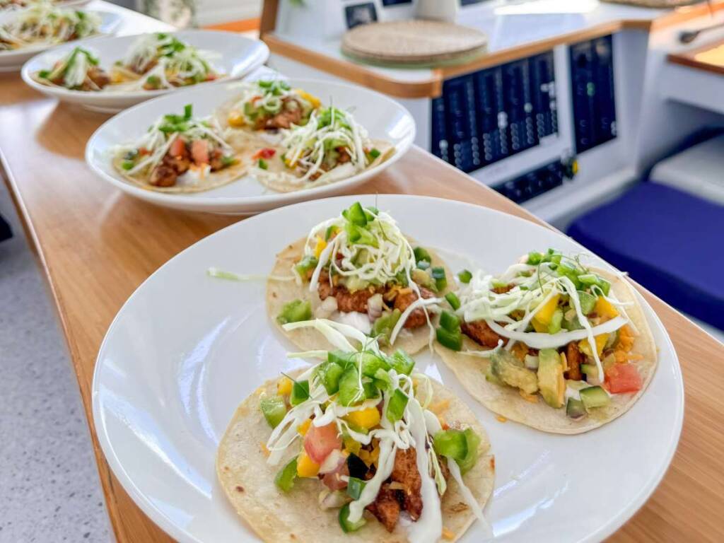 A gap year in Spain not only meant Olivia became fluent in Spanish but it also introduced her to the flavours of Europe. That and further overseas travel is reflected in her culinary style which infuses global influences. Guests frequently comment on the variety of cuisine as well as the abundance of meal components that are made from scratch. After her years living on the ocean, she understands what people crave after a full day in the sun.