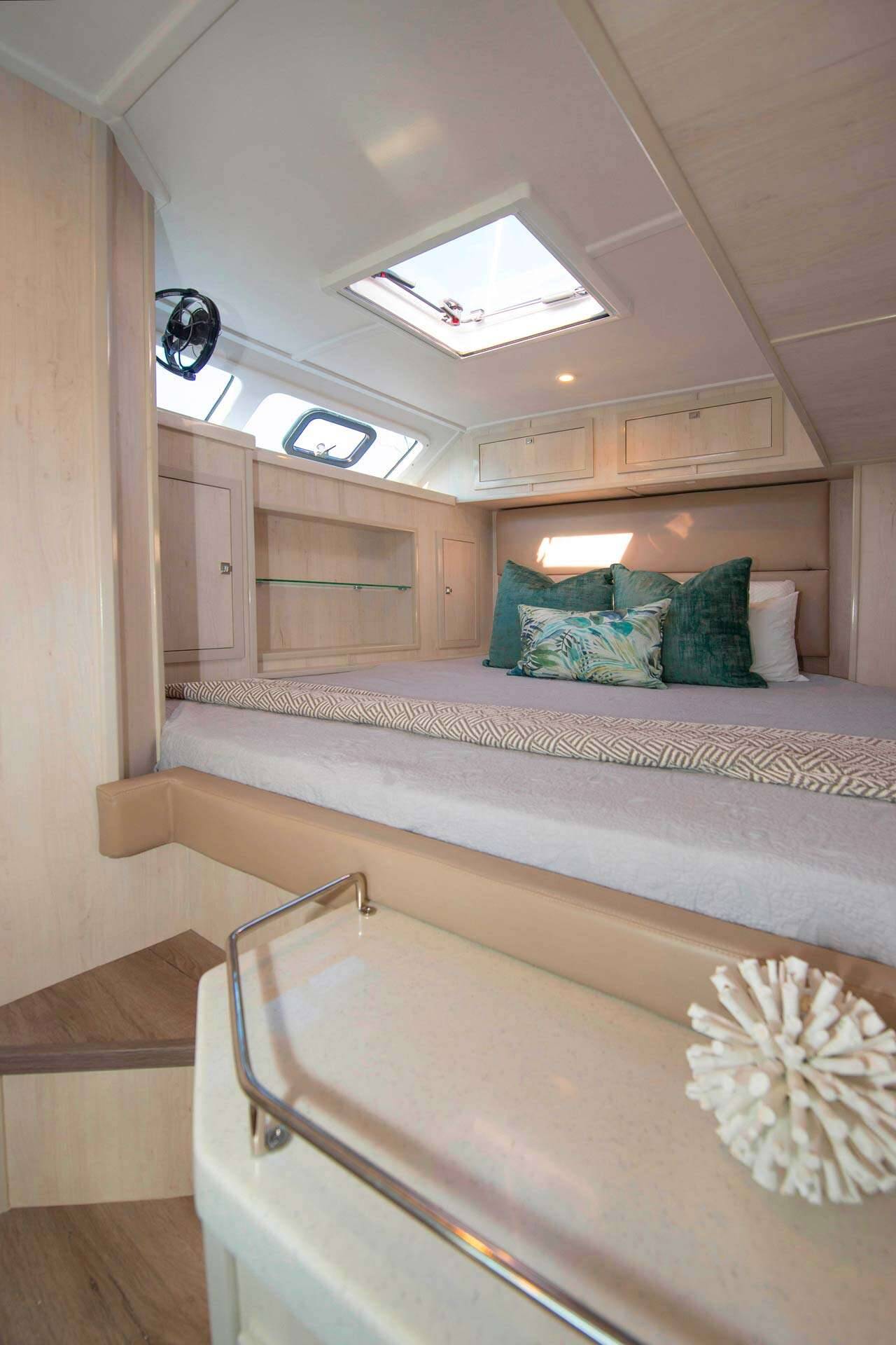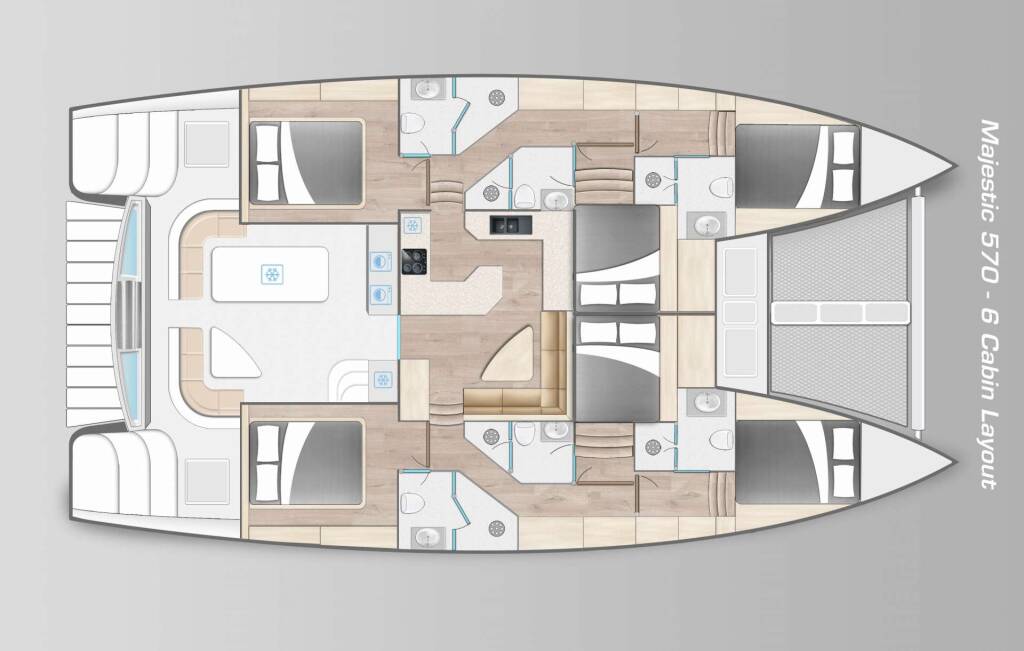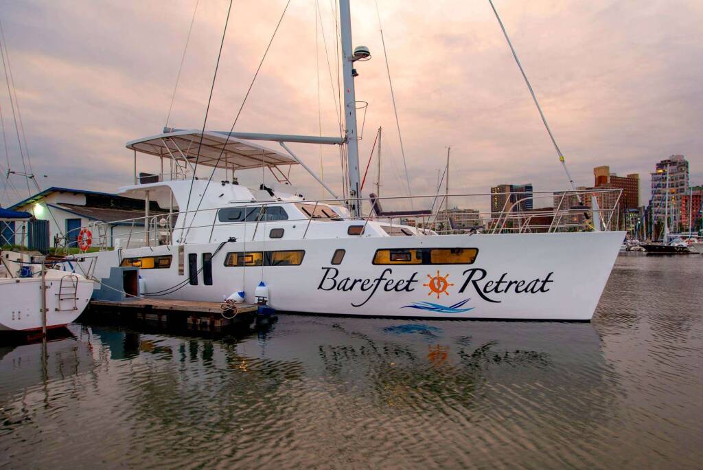 Accommodation: Barefeet Retreat accommodates up to 10 guests in 5 luxury queen cabins each with its own on-suite head and shower. All guest cabins are fully air-conditioned for guest comfort. Barefeet Retreat has a galley-up layout with all the modern amenities needed for the ultimate family and friend vacation.