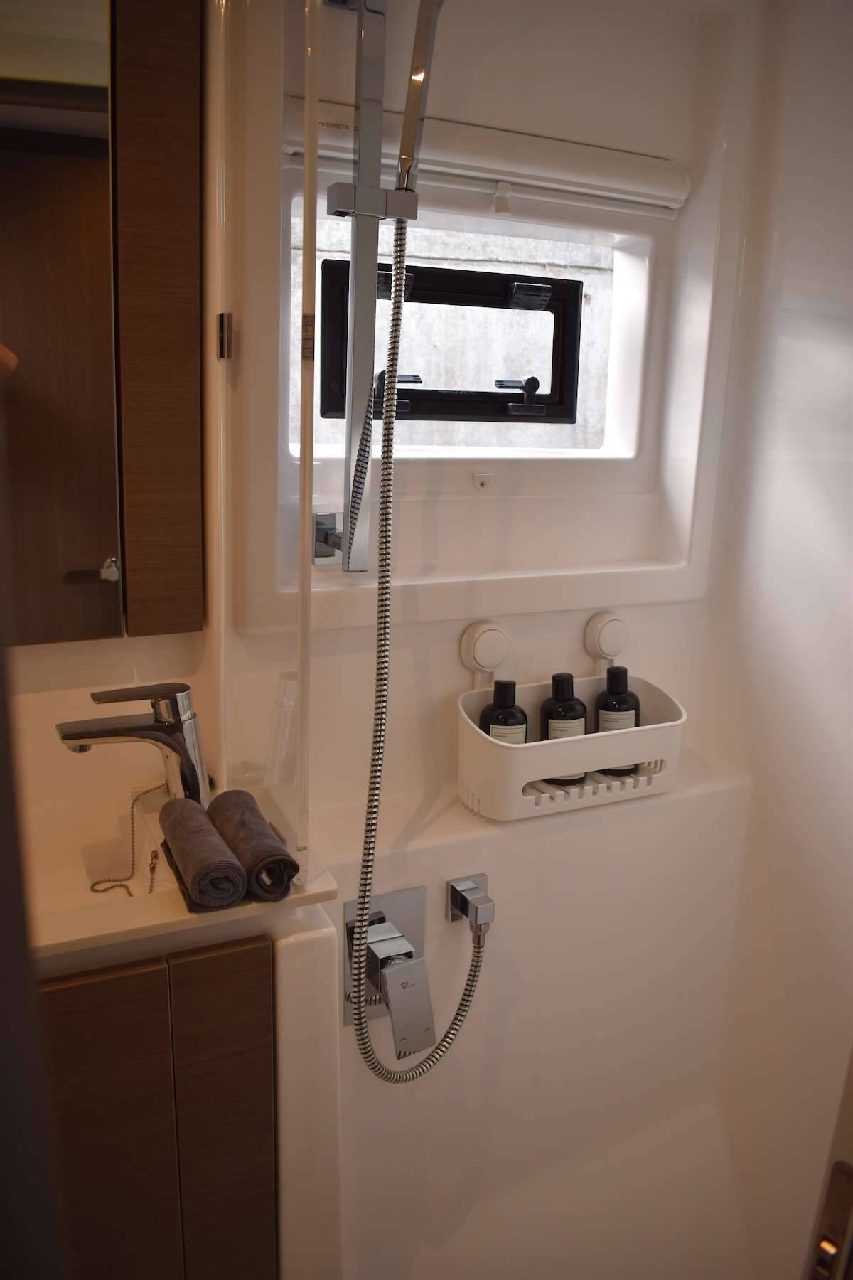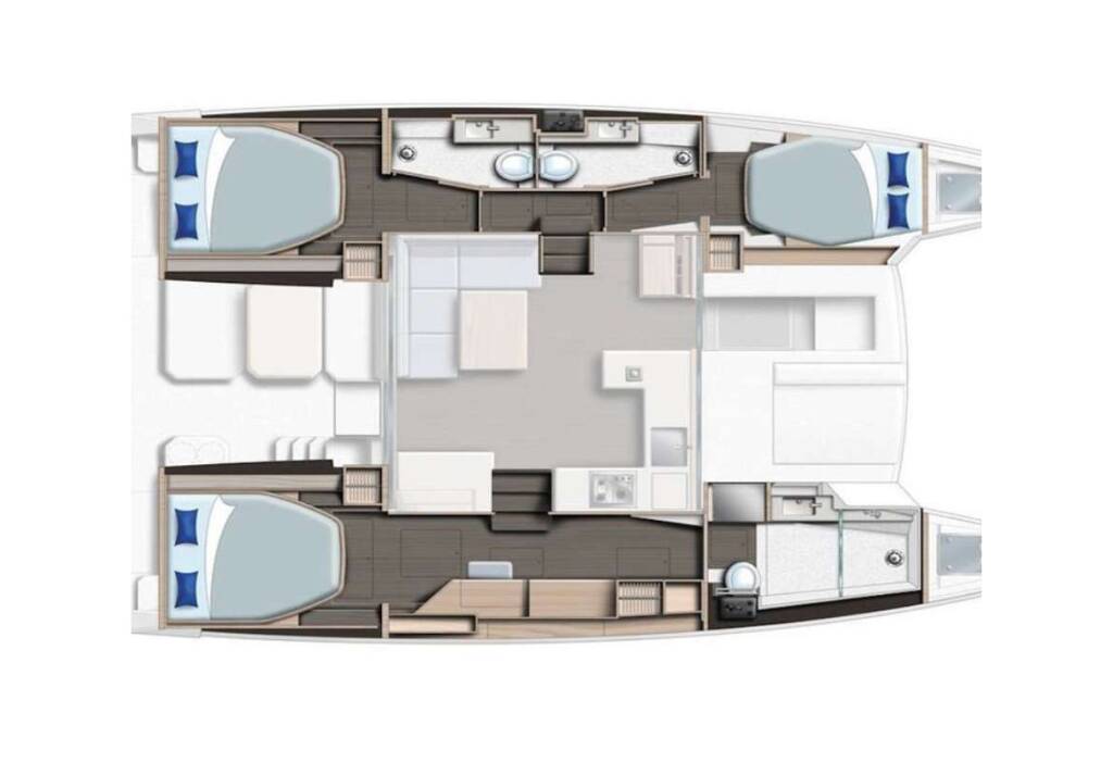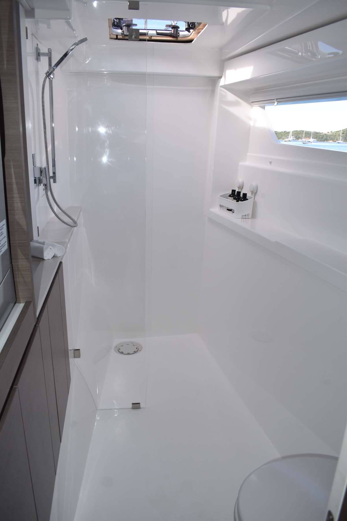 Luxus-Crew-Katamaran BELIEVEN, Baujahr 2021, liegt vor Anker in Caribbean Virgin Islands (US). Sie verfügt über 2 Kabinen und bietet Platz für 4 Personen.
