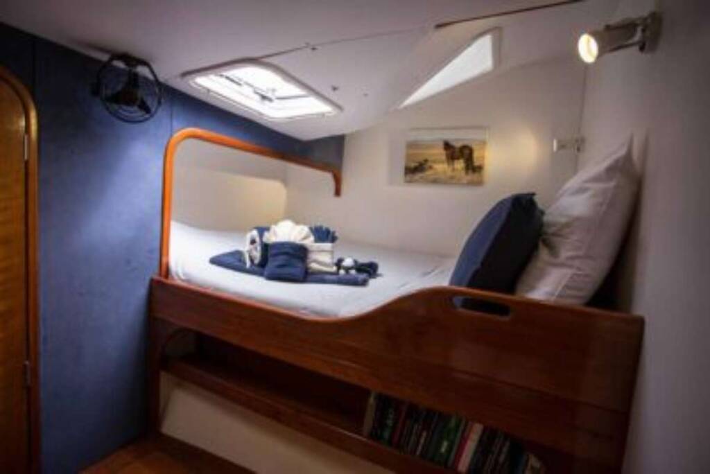 Four queen size cabins offer our guests private and comfortable accommodation. Each cabin has a complete inventory of towels, bookshelves and fans, and ample storage space.