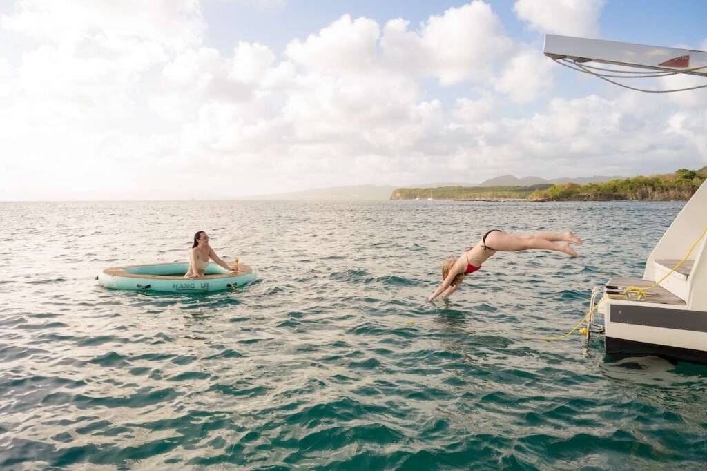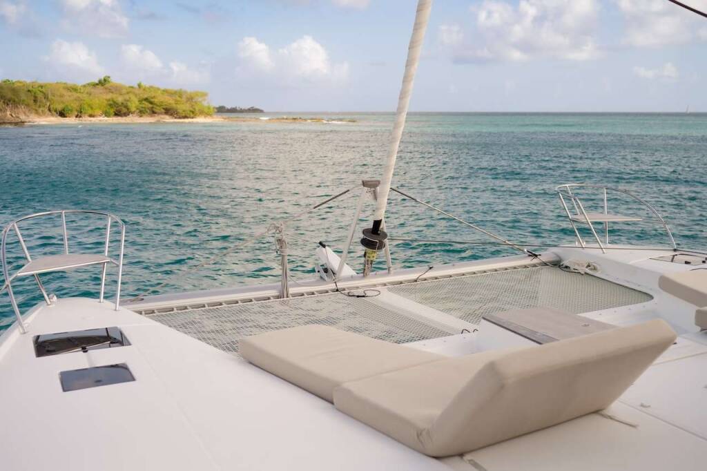 Luxus-Crew-Katamaran Beyond, Baujahr 2022, liegt vor Anker in Bahamas, Caribbean Leewards. Sie verfügt über 4 Kabinen und bietet Platz für 6 Personen.