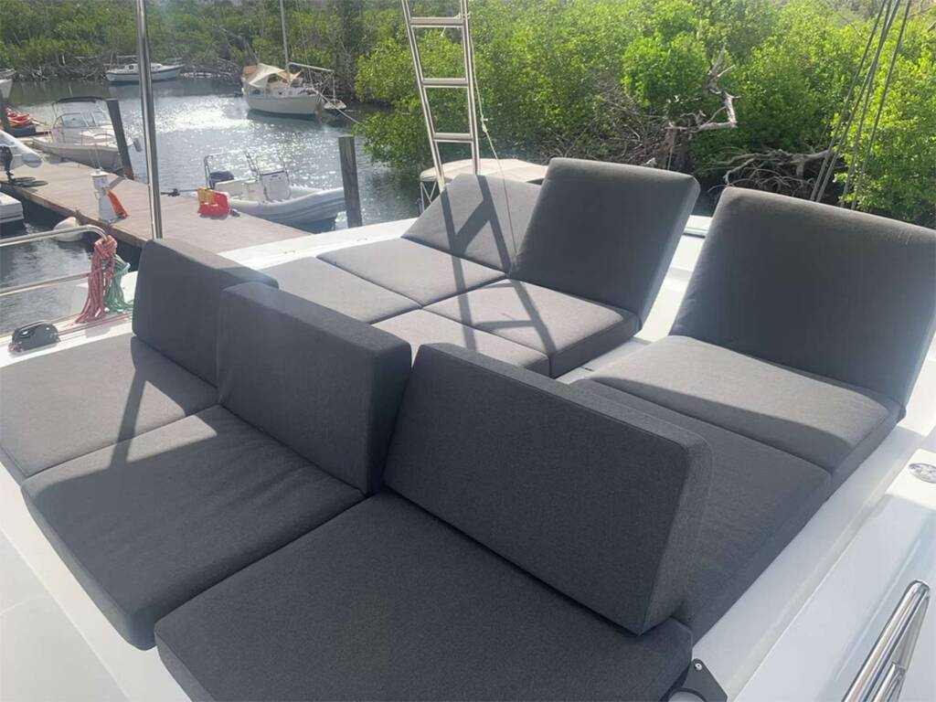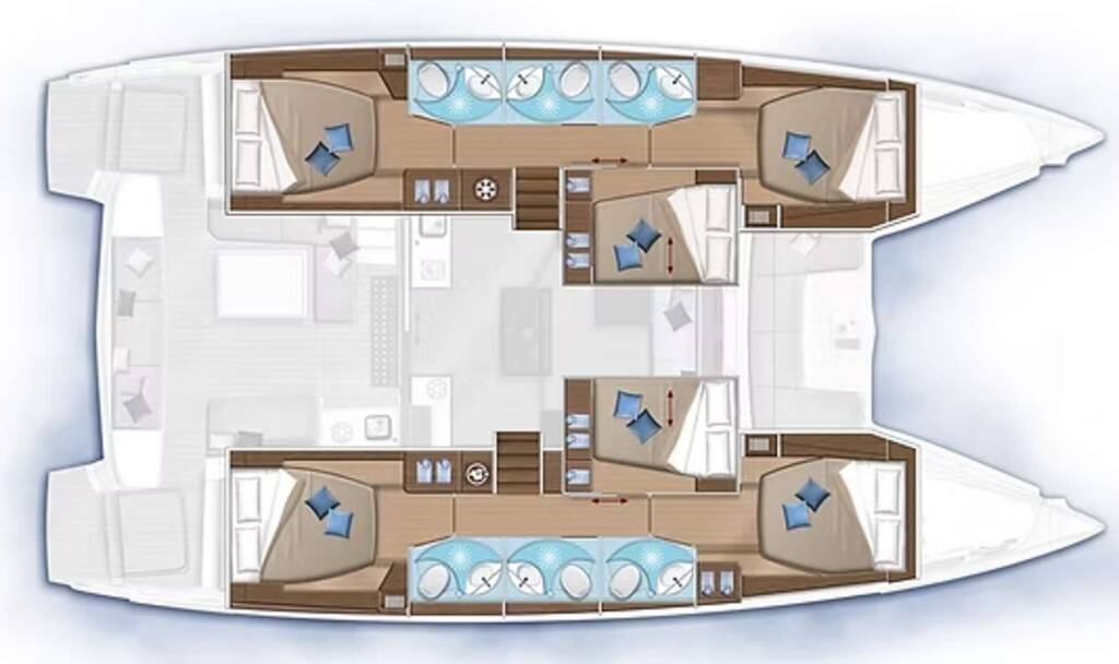 Luxus-Crew-Katamaran BIG BERTHA, Baujahr 2022, liegt vor Anker in Caribbean Virgin Islands (US/BVI), Caribbean Virgin Islands (US). Sie verfügt über 4 Kabinen und bietet Platz für 8 Personen.