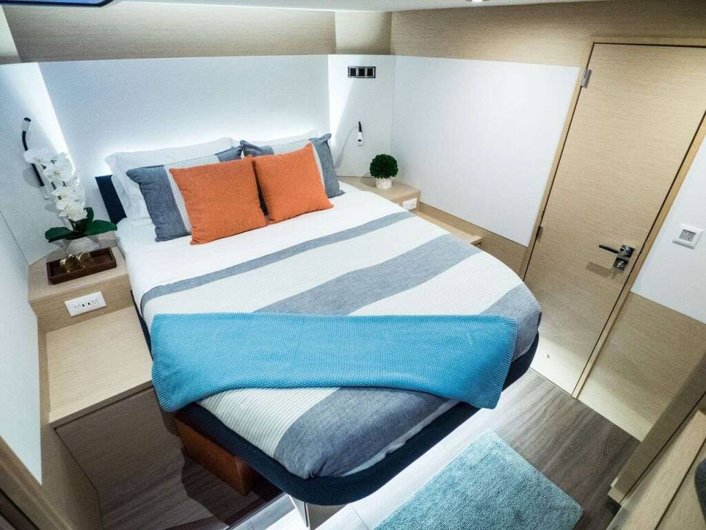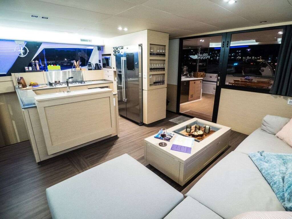 Luxus-Crew-Katamaran BLUE PEPPER, Baujahr 2018, liegt vor Anker in Caribbean Virgin Islands (US/BVI), Caribbean Virgin Islands (US). Sie verfügt über 5 Kabinen und bietet Platz für 10 Personen.