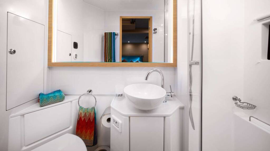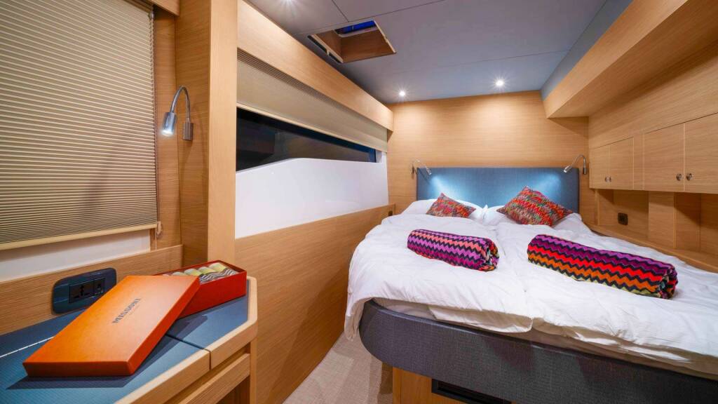 Additionally, the spacious layout is designed to make excellent use of every area on board. Ultimately, the Aquila 54 strikes the perfect balance between looks and functionality, offering a smooth, enjoyable ride suitable for both comfort and adventure. With its vast living areas and elegantly decorated interior, "BY MY SIDE" is an excellent choice for a relaxing charter holiday in the Adriatic.