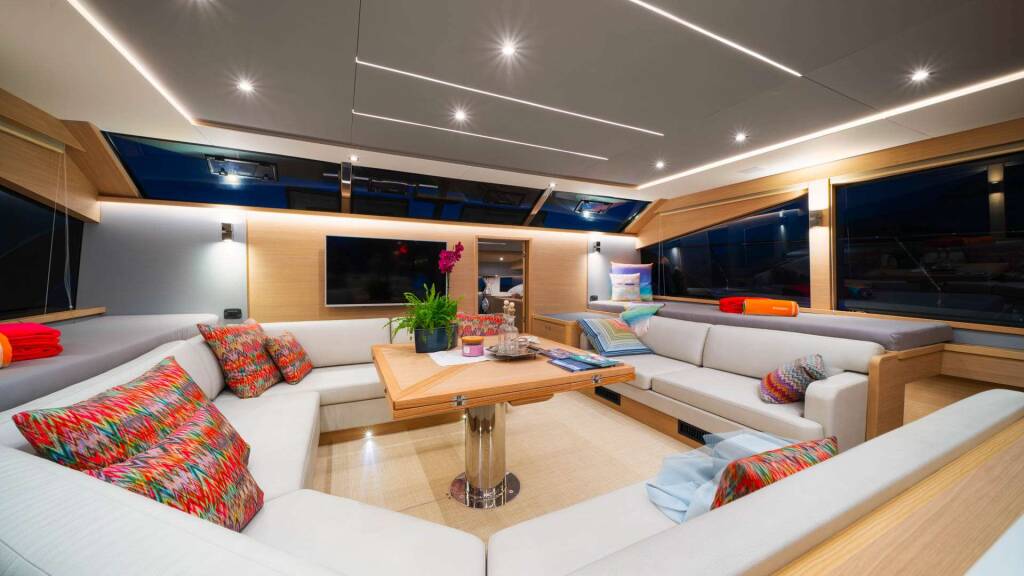 • Open bar area connecting social areas between aft cockpit and salon/galley