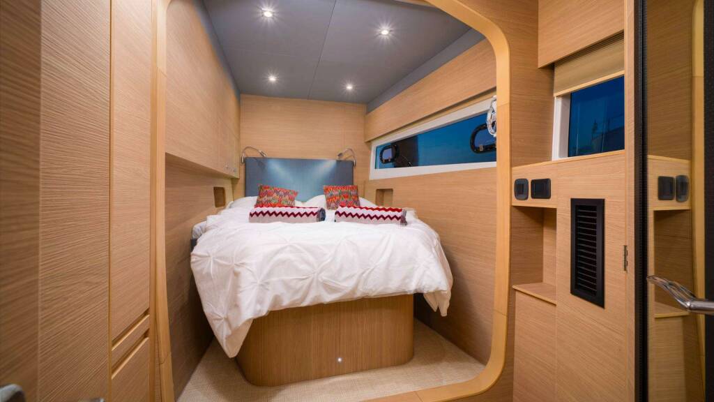 Aquila 54 "BY MY SIDE" is a 2024 power catamaran that can comfortably accommodate up to 8 guests in one master cabin and three double cabins, all with en-suite bathrooms. Built for both pleasure and performance, "BY MY SIDE" not only combines modern design with solid construction but also ensures a high level of efficiency and luxury.