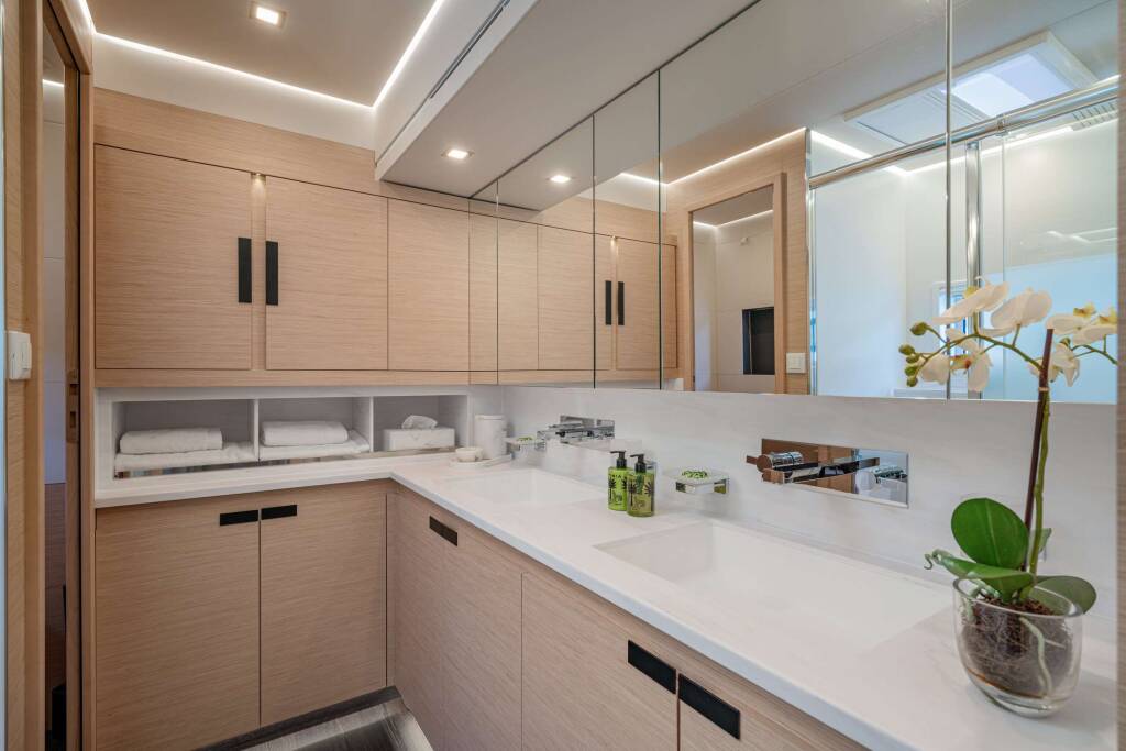 Accommodation: 4 cabins: a Master suite with a double bed and en-suite bathroom, a VIP suite also with a double bed and en-suite, and two additional cabins, each featuring a double bed and private en-suite