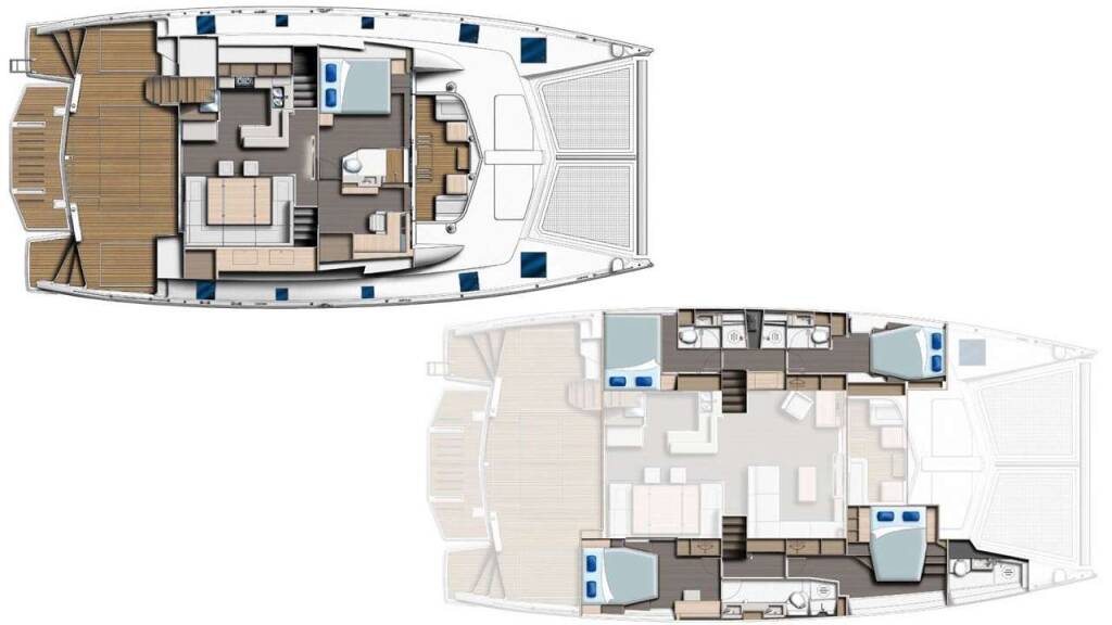Luxus-Crew-Katamaran DEEP BLUE, Baujahr 2016, liegt vor Anker in Caribbean Virgin Islands (US/BVI), Caribbean Windwards. Sie verfügt über 4 Kabinen und bietet Platz für 8 Personen.