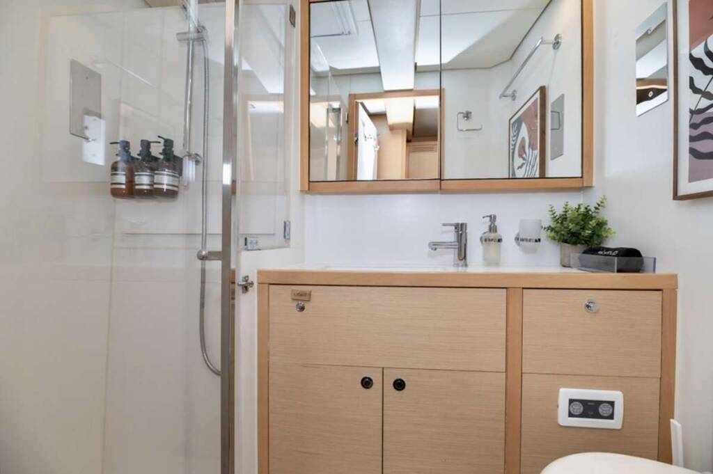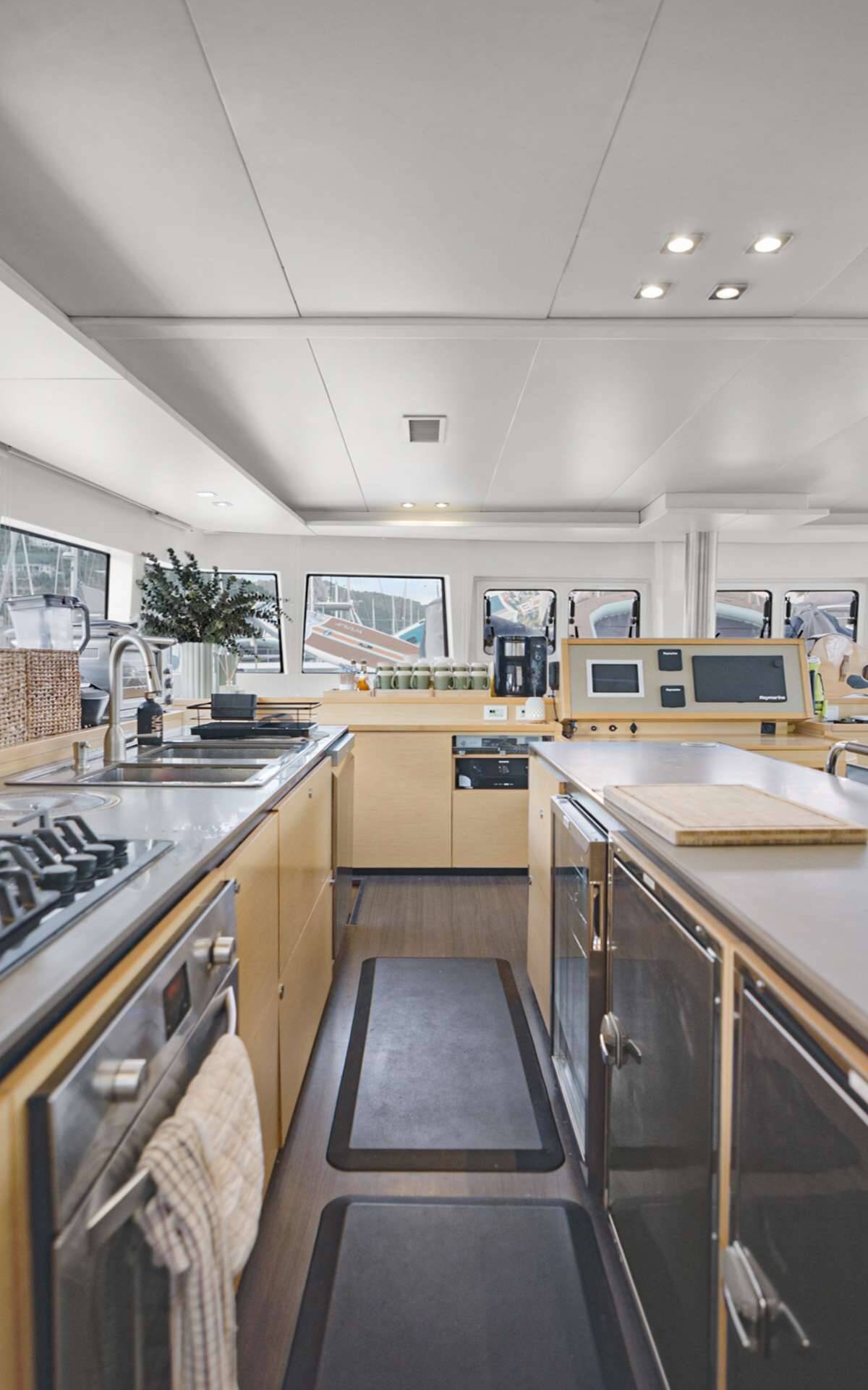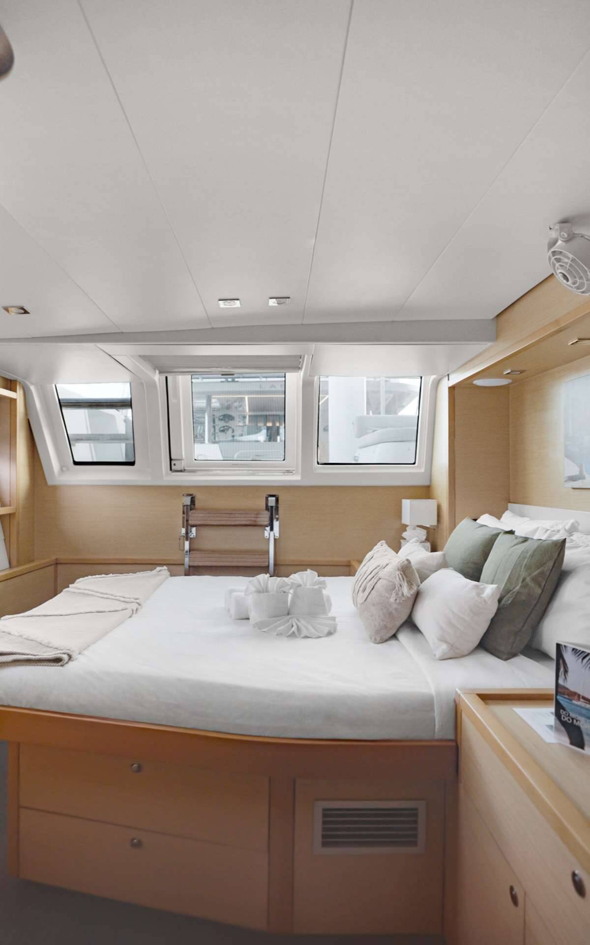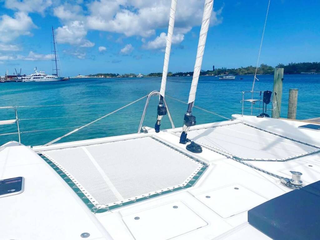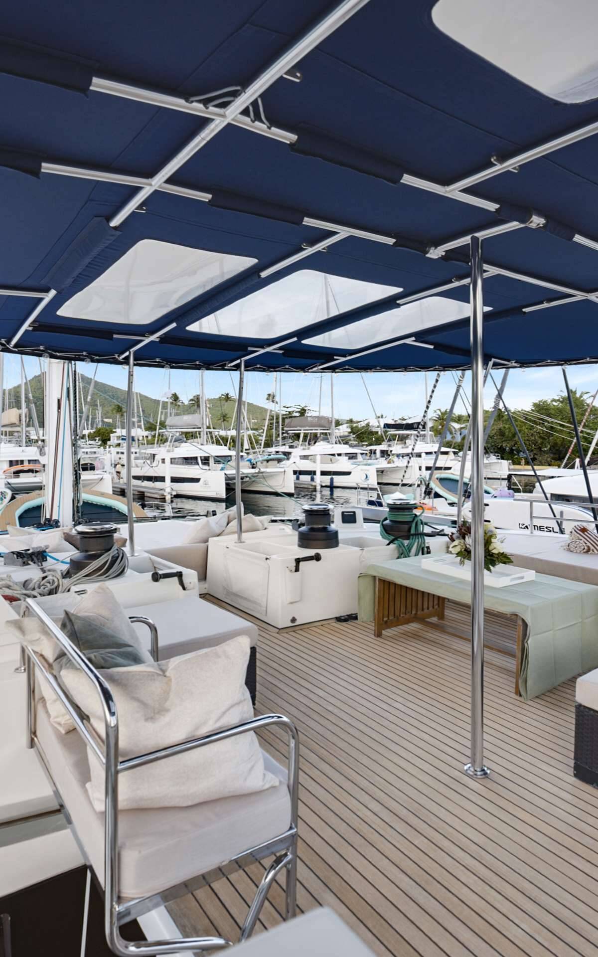 Luxus-Crew-Katamaran DO MORE, Baujahr 2013, liegt vor Anker in Caribbean Virgin Islands (US/BVI), Caribbean Leewards. Sie verfügt über 5 Kabinen und bietet Platz für 10 Personen.