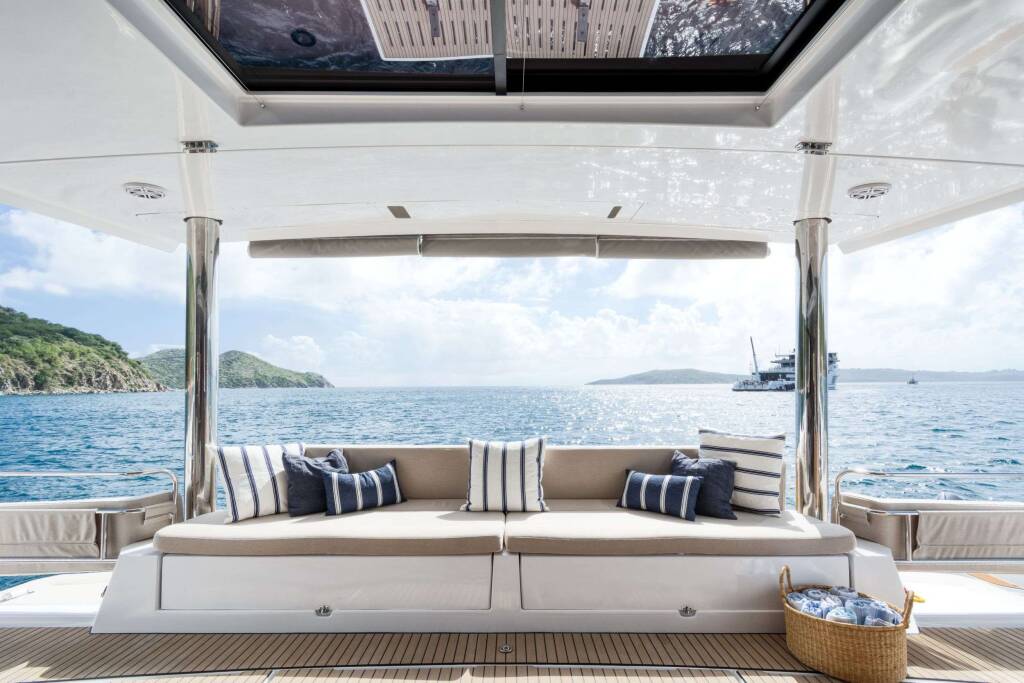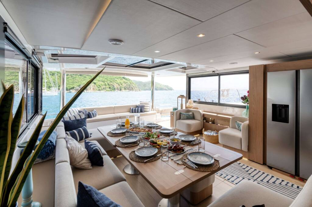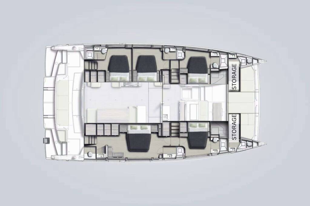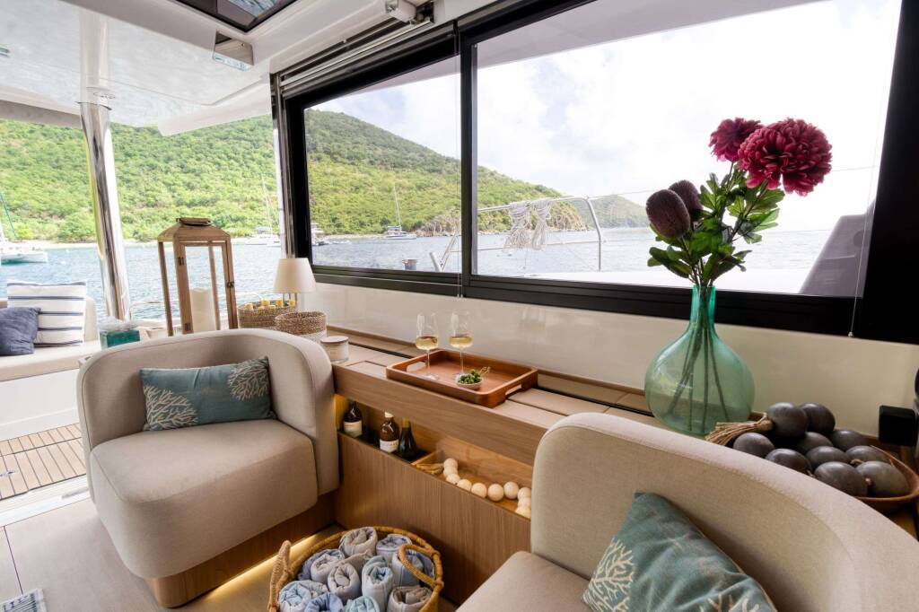 Luxus-Crew-Katamaran DREAM ON, Baujahr 2026, liegt vor Anker in Caribbean Leewards, Caribbean Virgin Islands (BVI). Sie verfügt über 4 Kabinen und bietet Platz für 8 Personen.