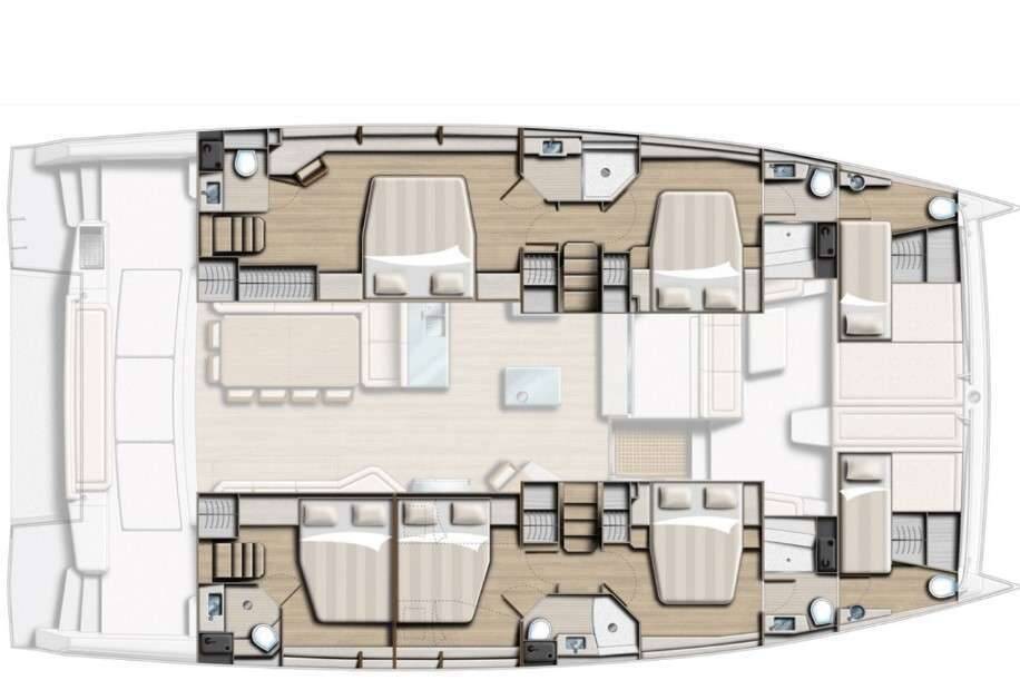 Luxus-Crew-Katamaran Epiphany, Baujahr 2023, liegt vor Anker in Caribbean Virgin Islands (US/BVI), Caribbean Leewards. Sie verfügt über 5 Kabinen und bietet Platz für 10 Personen.
