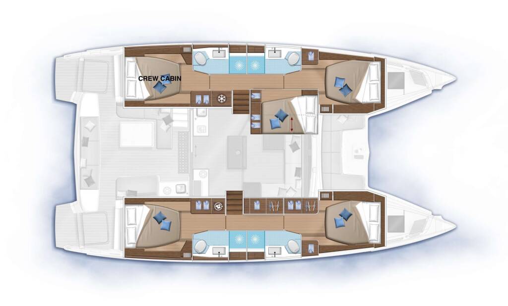 Accommodation: Accommodates 8 guests in 4 cabins with 3 ensuite heads w/ enclosed showers.