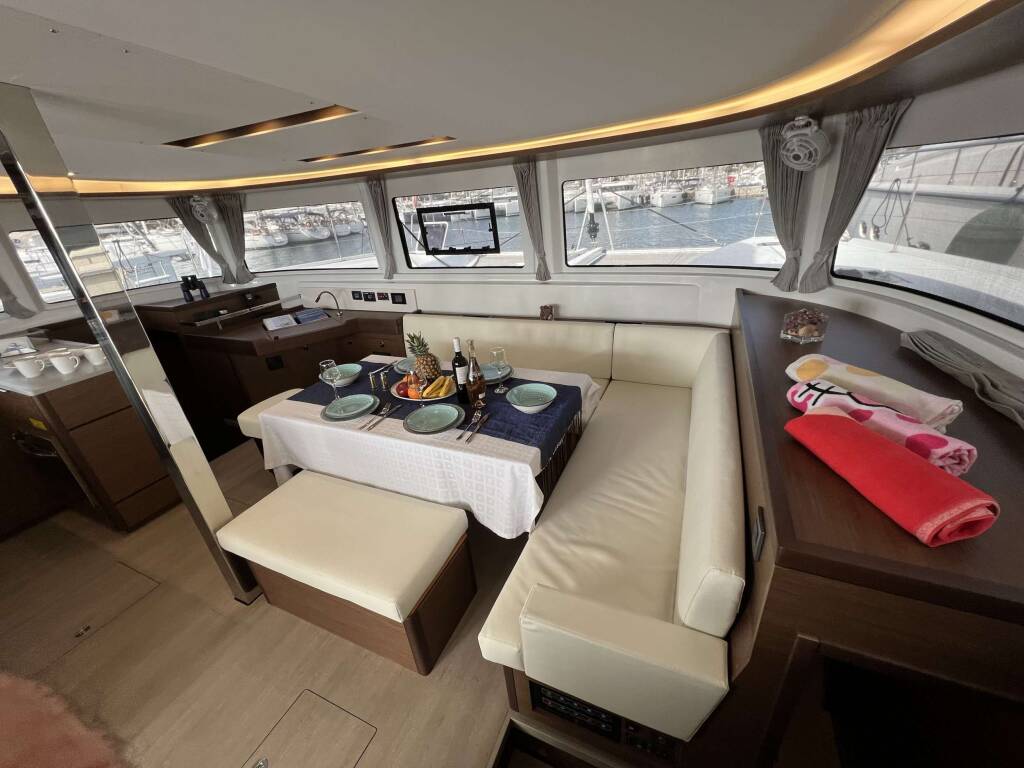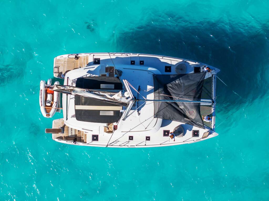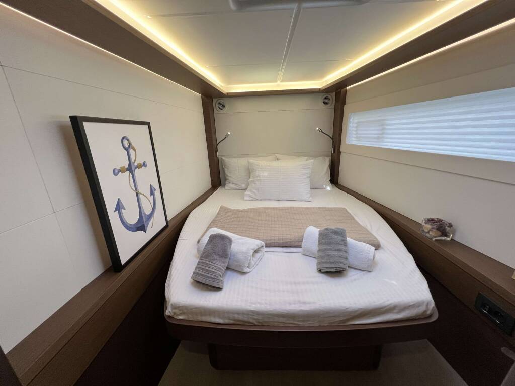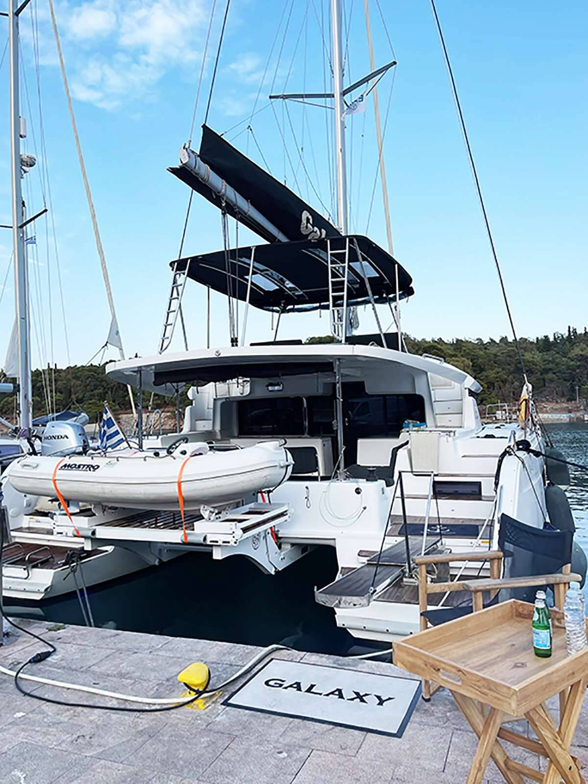Luxus-Crew-Katamaran GALAXY, Baujahr 2022, liegt vor Anker in Greece. Sie verfügt über 4 Kabinen und bietet Platz für 8 Personen.