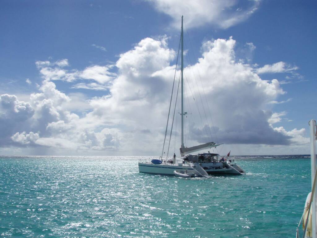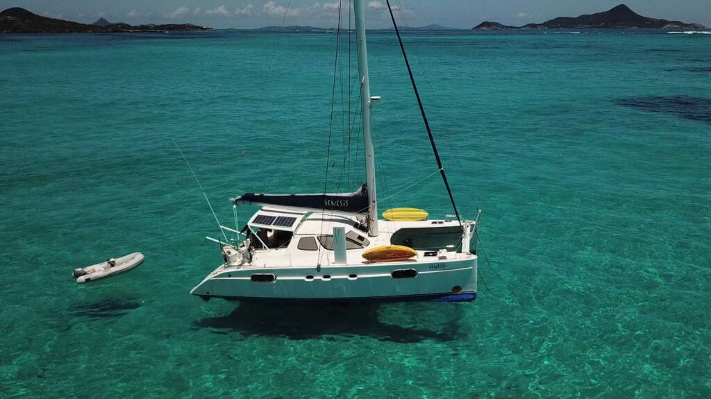 Luxus-Crew-Katamaran GENESIS, Baujahr 2000, liegt vor Anker in Caribbean Leewards, Caribbean Windwards. Sie verfügt über 1 Kabinen und bietet Platz für 2 Personen.