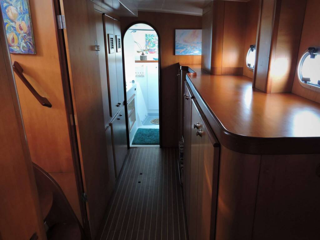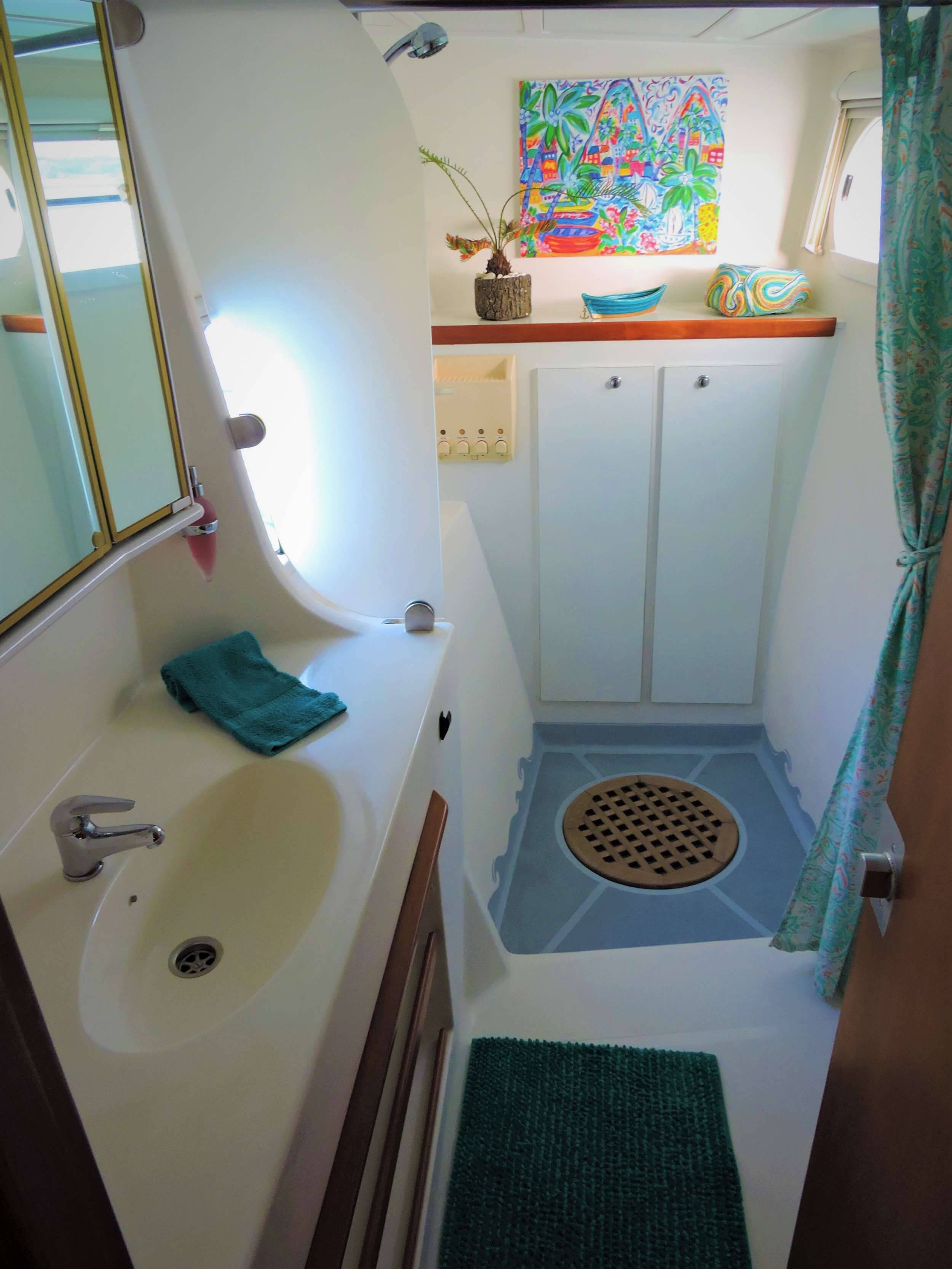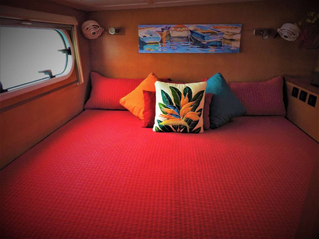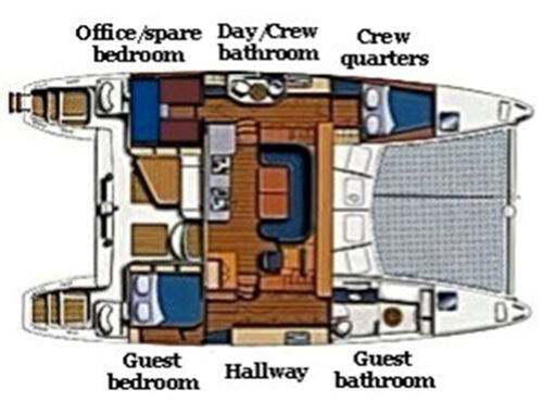 Accommodation: One of the hulls dedicated to the guest. King berth in aft cabin and oversized bath head/shower