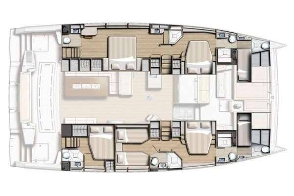 Accommodation: 3 queen guest cabins and a twin bunk guest cabin, each with a private en-suite electric head, stall shower and sink/vanity. All cabins with exception of the starboard aft cabin are dry heads.