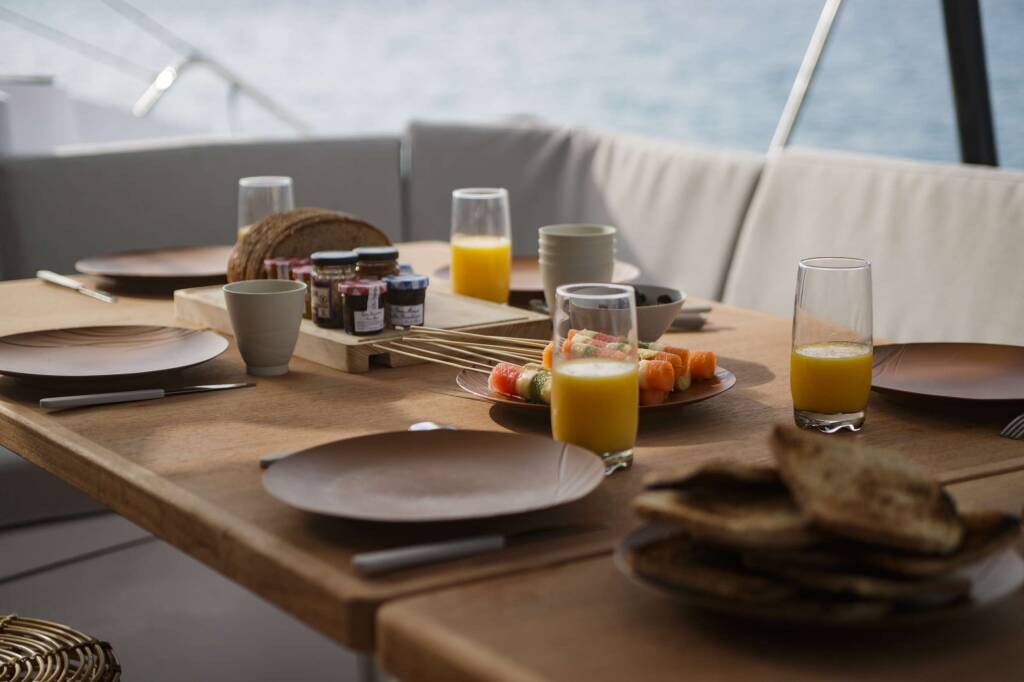 -Meals & Beverages onboard - 6 breakfasts, 6 lunches, and 2 dinners prepared family-style on board (shared cooking duties unless a professional chef is added for $2,400 extra)
