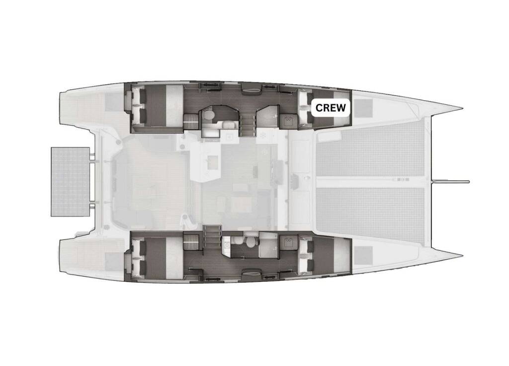 CABIN CONFIGURATION: 2 queen cabins. 1 double cabin. Port Sbd cabin shares head with Crew Cabin (Port Foreward)
