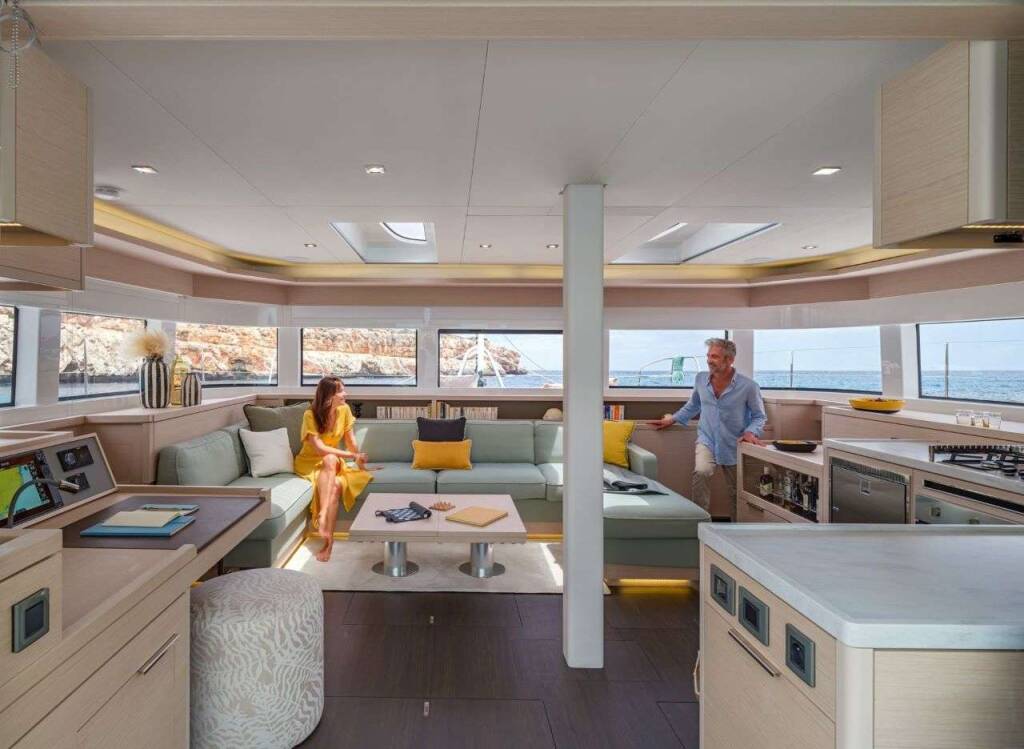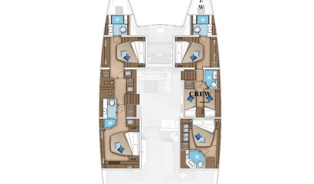 Luxus-Crew-Katamaran IRIS, Baujahr 2025, liegt vor Anker in W. Med - Spain/Balearics. Sie verfügt über 4 Kabinen und bietet Platz für 8 Personen.