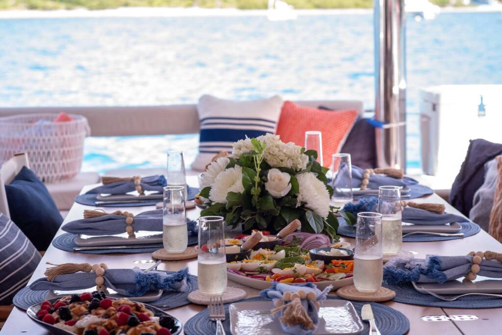 - KaYachtic also has a bimini on the front of the boat, allowing for shade during the day and alfresco outdoor dining!