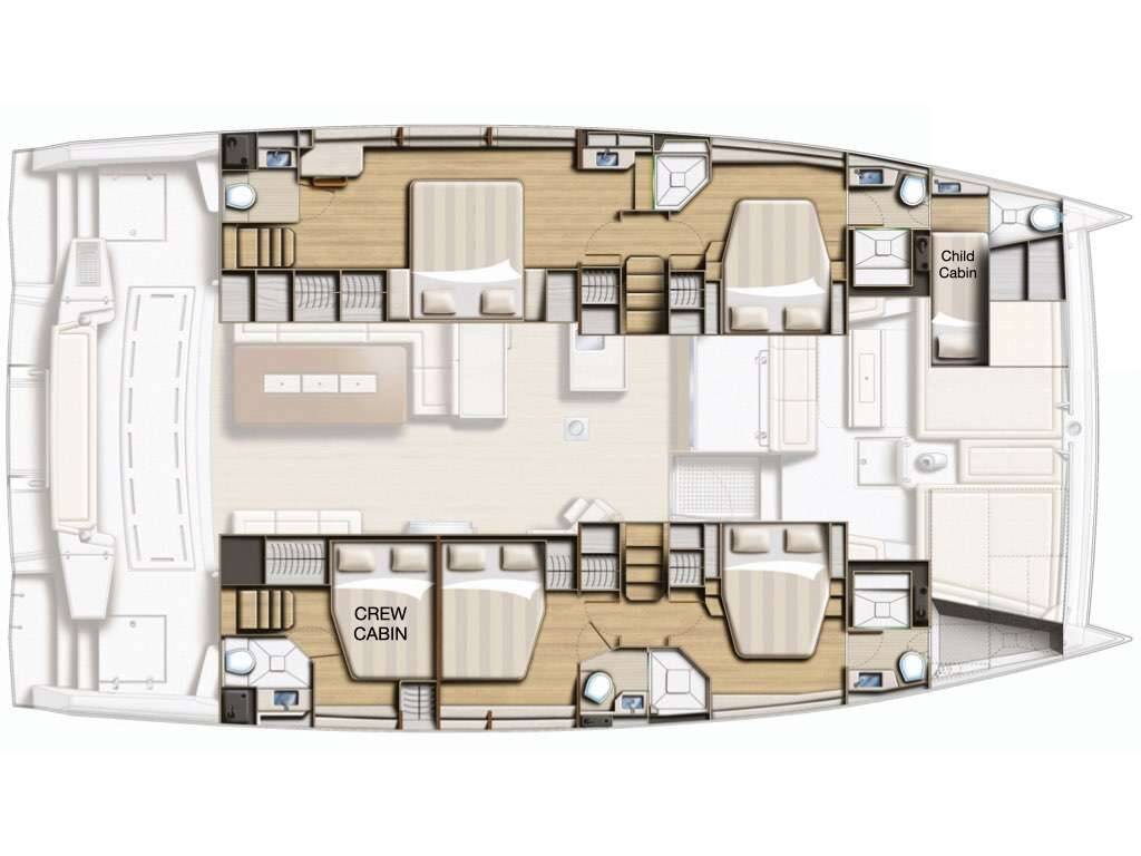4 double cabins and 1 small single forepeak cabin. Forepeak Cabin is ideal for children or young teens. Port Fwd cabin only accessible via another guest cabin. Suitable only for family sharing.