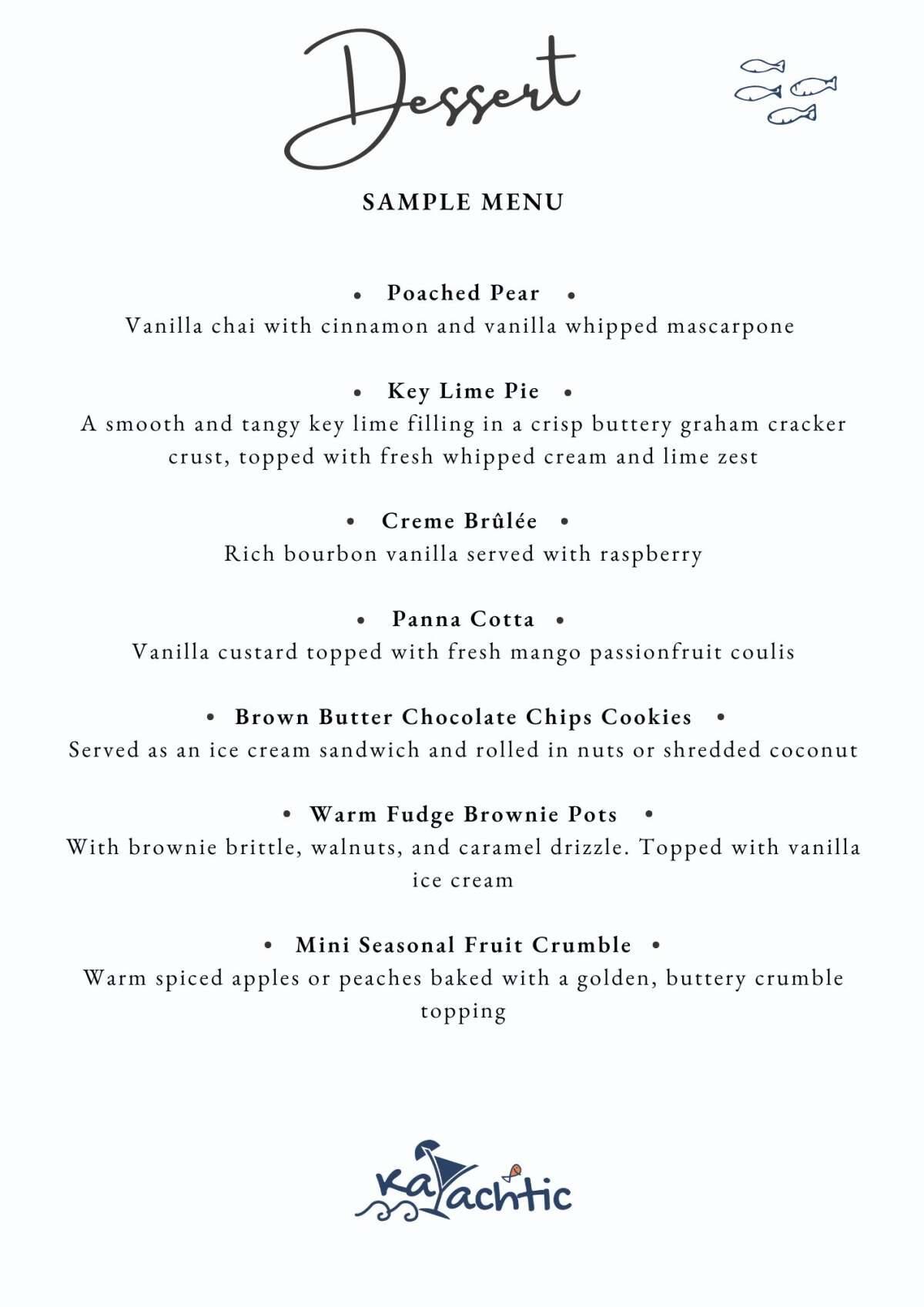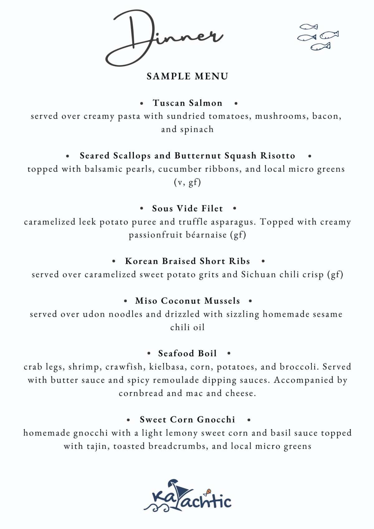 Having visited 50+ countries, Taylor loves drawing on her experiences traveling to create inventive dishes in a wide array of culinary styles focusing on simple, local ingredients. In 2018 Taylor decided to go from kitchen to galley and started working as a chef on boats. She has worked on sailboats in the Adriatic and Caribbean. Her goal on every charter is to ensure some of your favorite memories are the beautiful sunsets and the amazing food accompanying them.