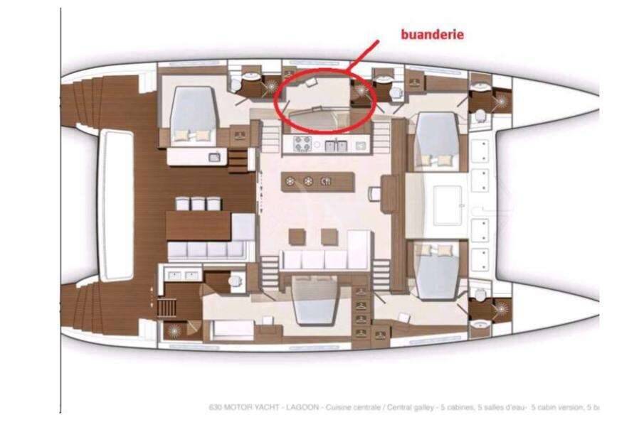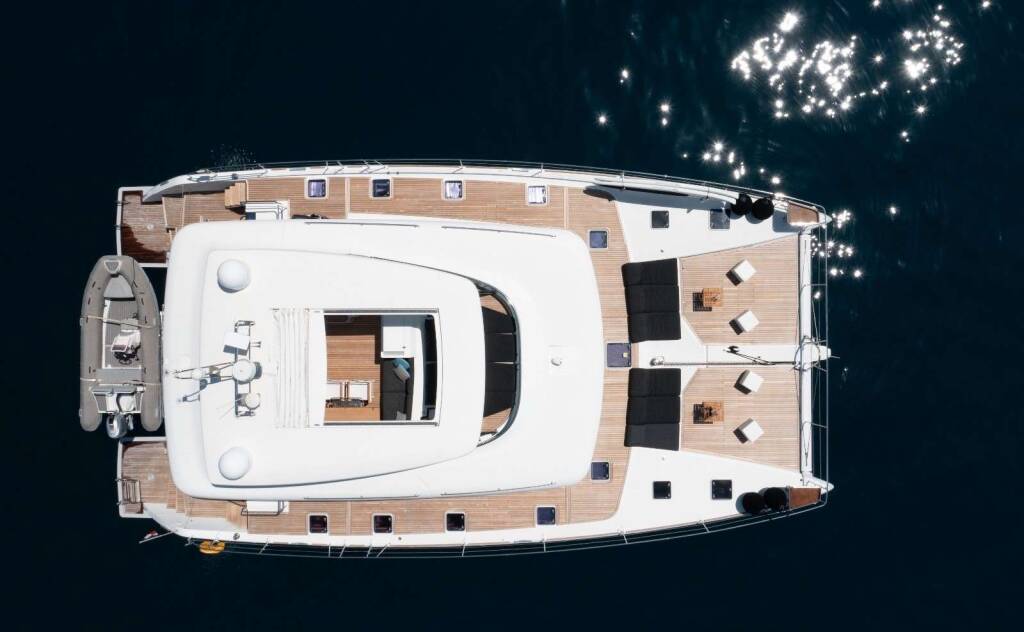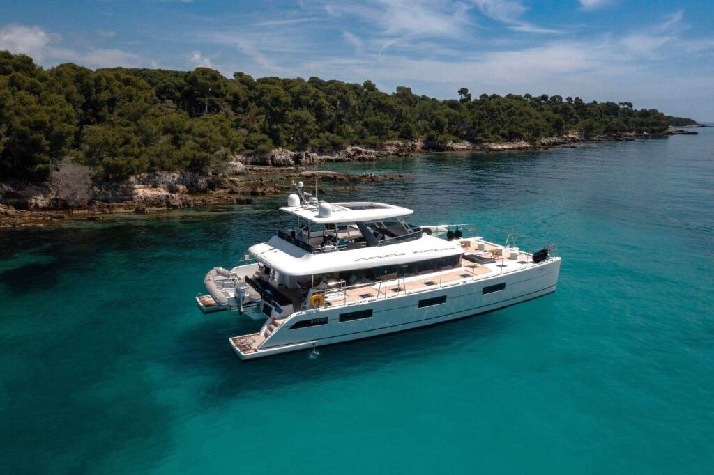Luxus-Crew-Katamaran LA FREGATE, Baujahr 2017, liegt vor Anker in W. Med -Riviera/Cors/Sard., Croatia. Sie verfügt über 4 Kabinen und bietet Platz für 8 Personen.