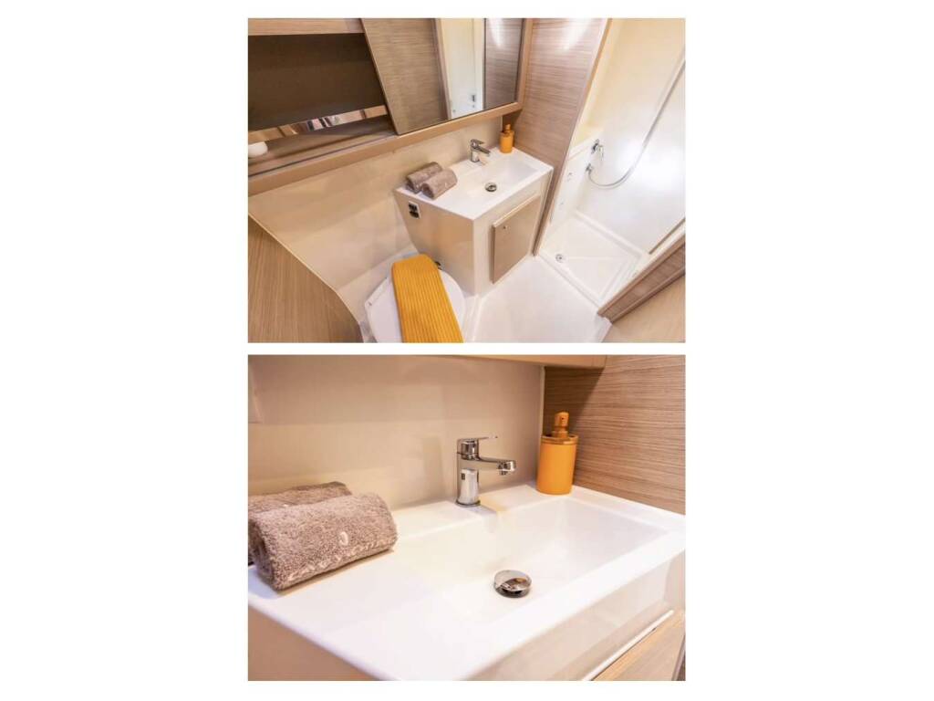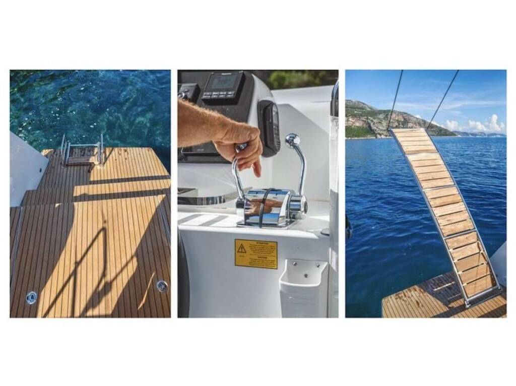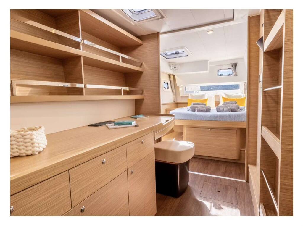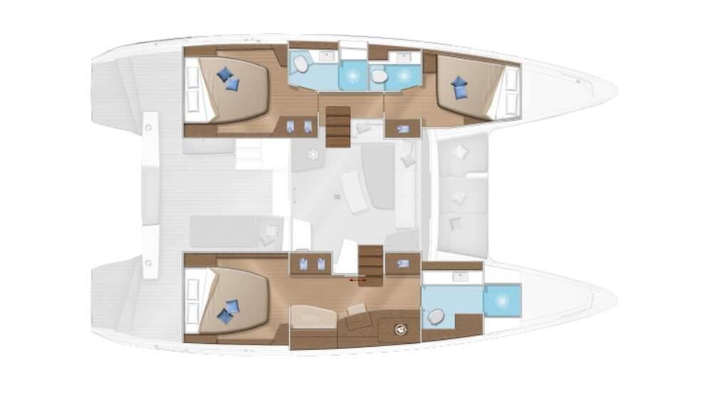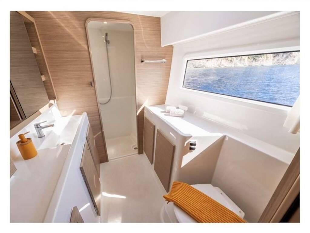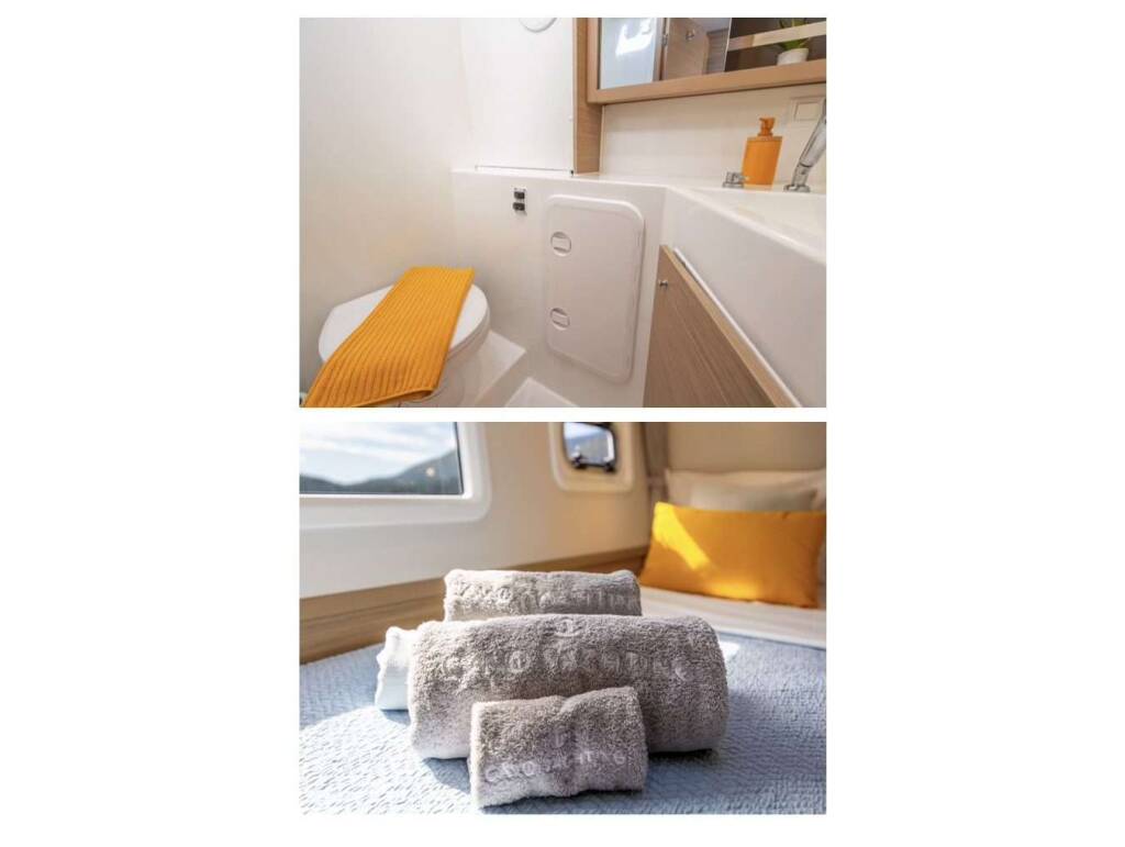 Luxus-Crew-Katamaran LUNA, Baujahr 2025, liegt vor Anker in Greece. Sie verfügt über 3 Kabinen und bietet Platz für 6 Personen.