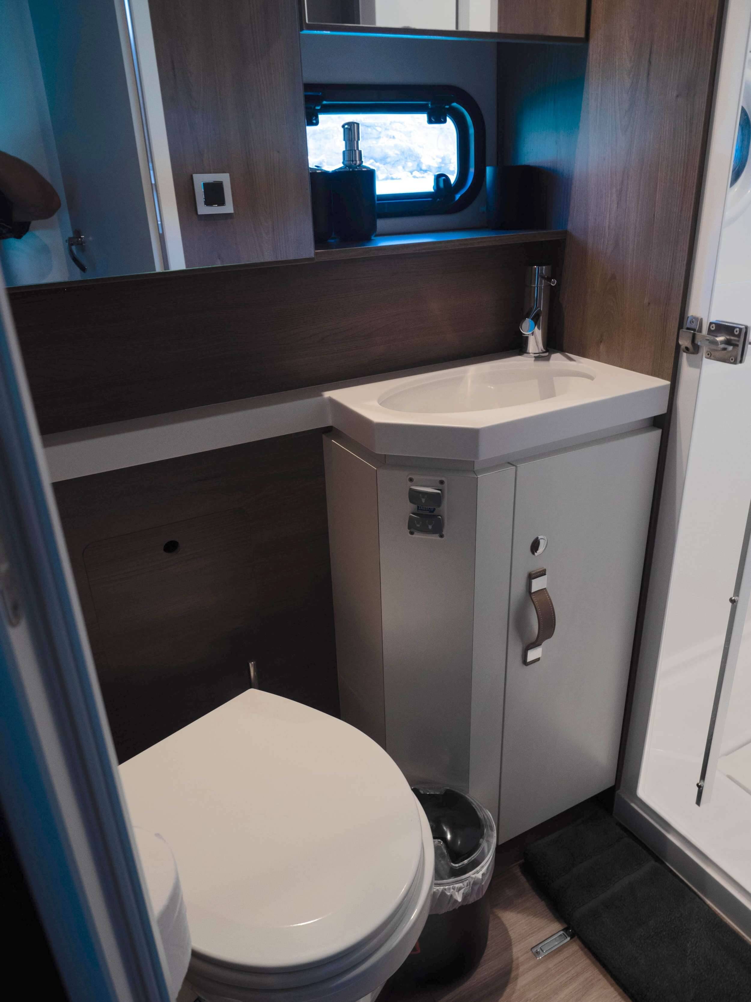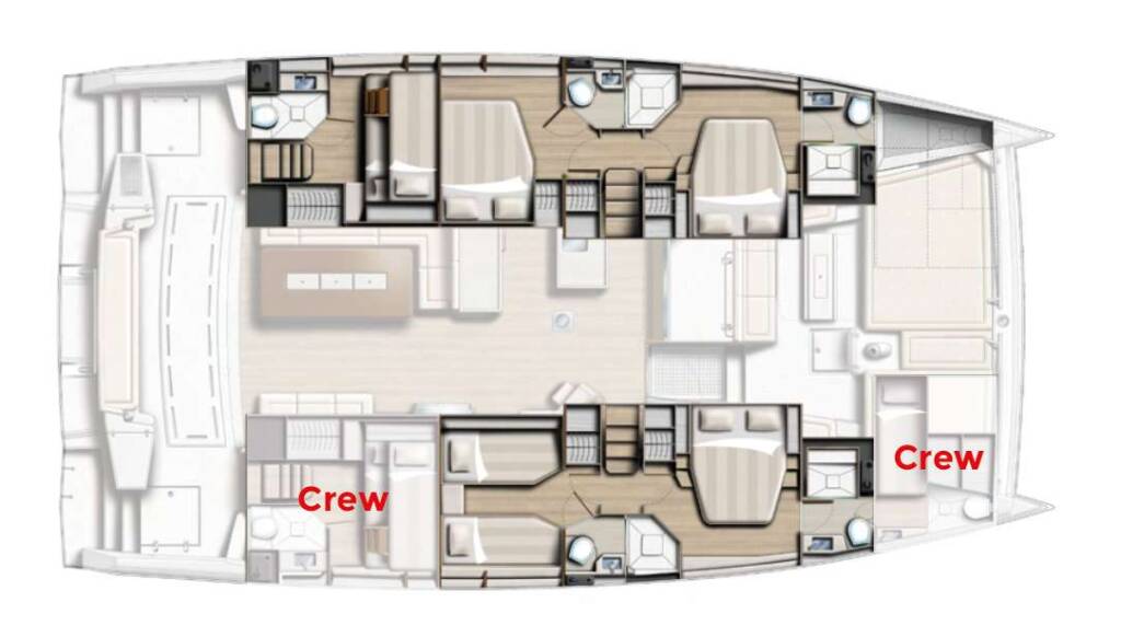 Crew: 1 front peak + WC, 1 aft triple cabin + WC.