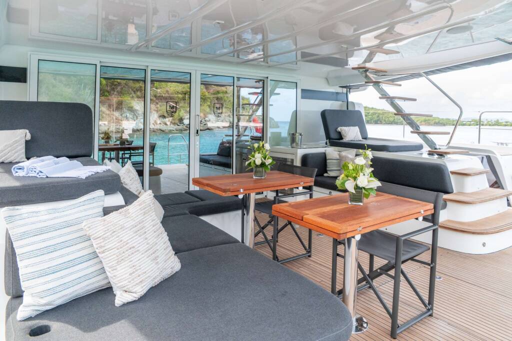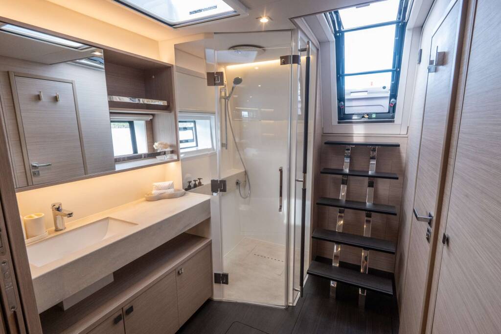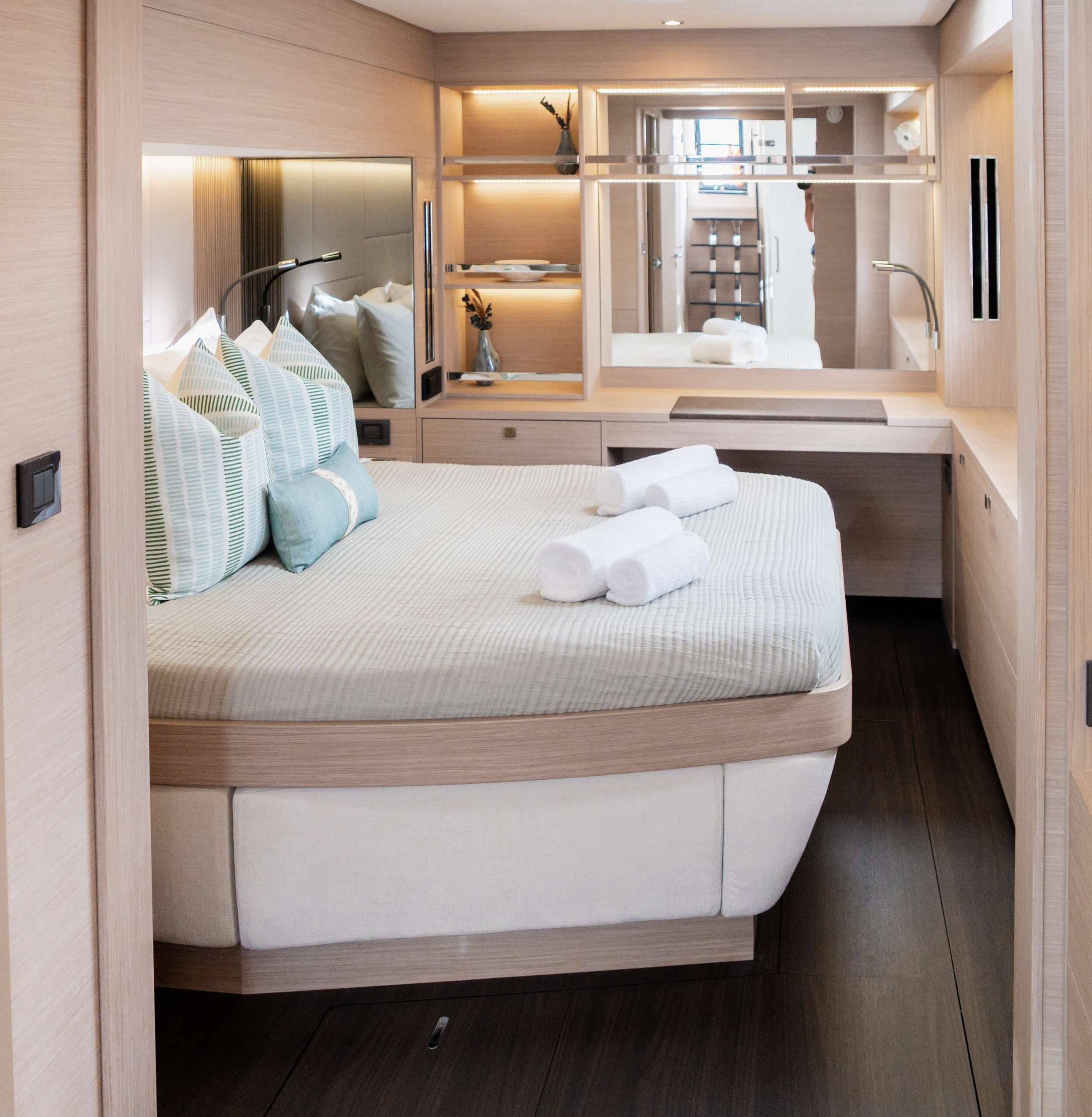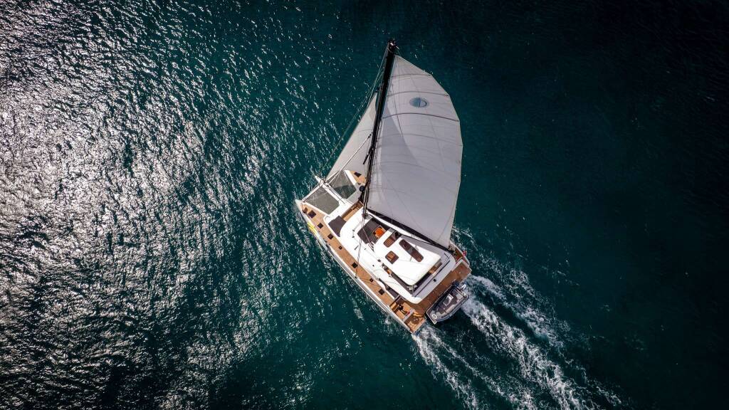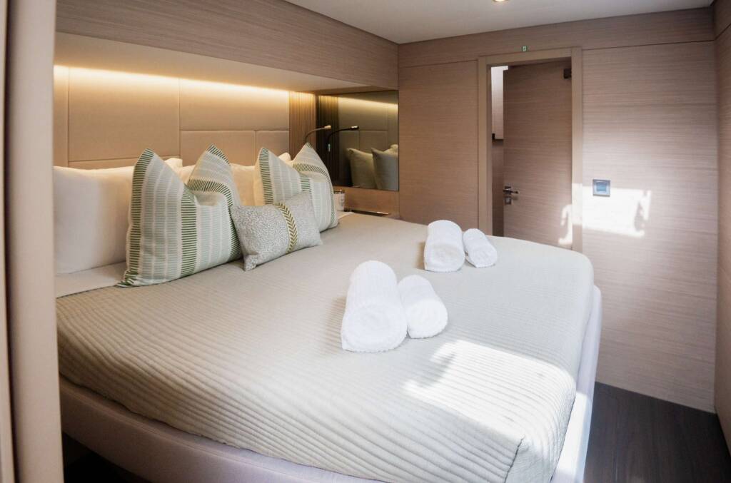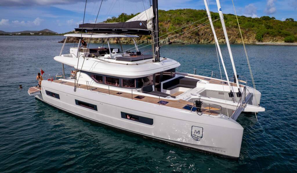 Luxus-Crew-Katamaran MINTED ONE, Baujahr 2026, liegt vor Anker in Caribbean Virgin Islands (US/BVI). Sie verfügt über 4 Kabinen und bietet Platz für 8 Personen.