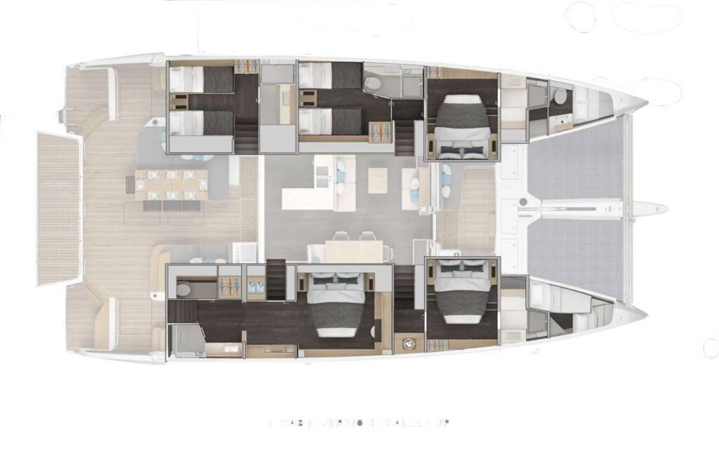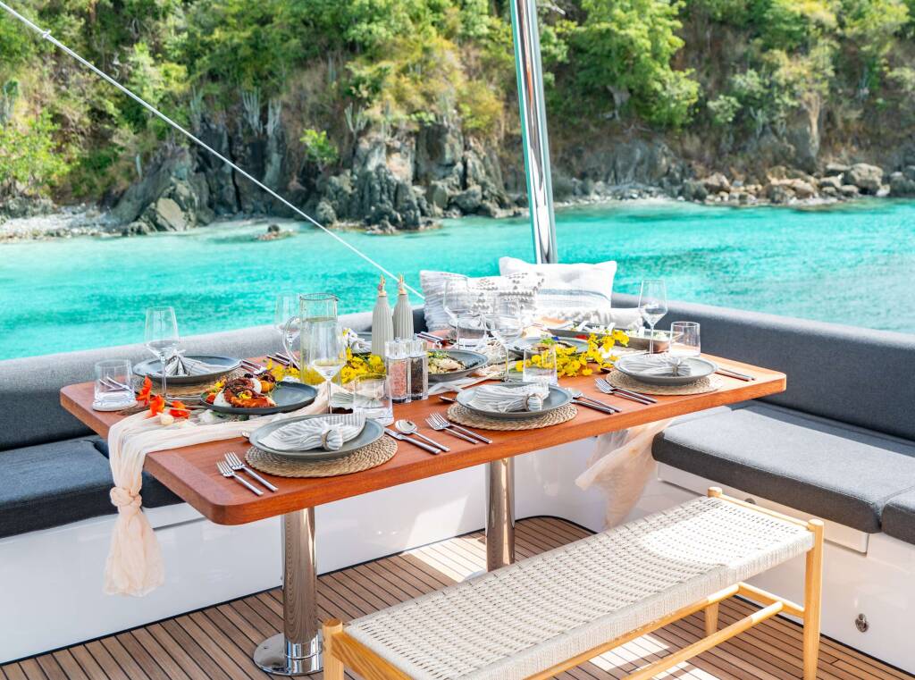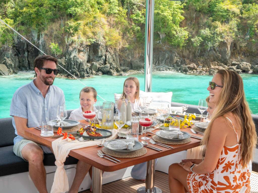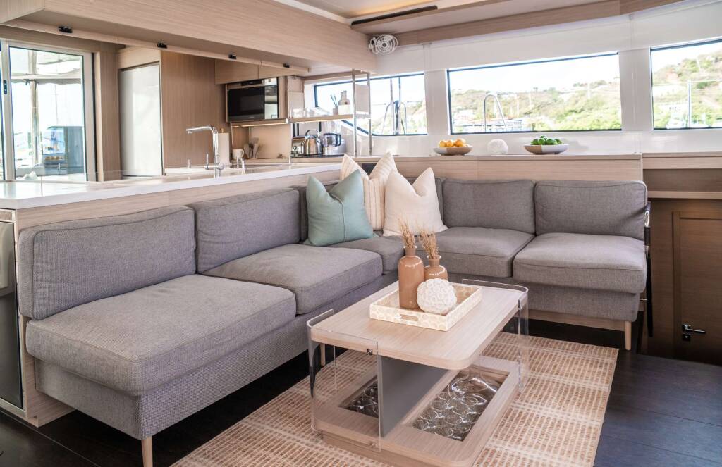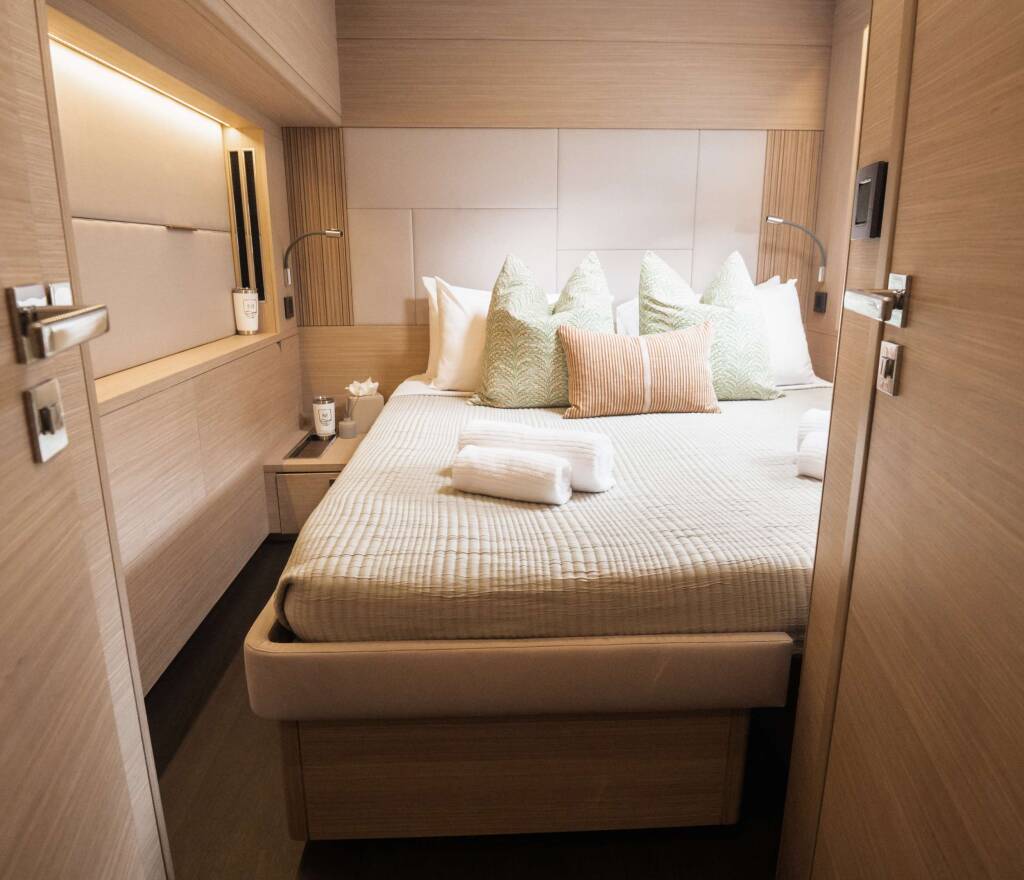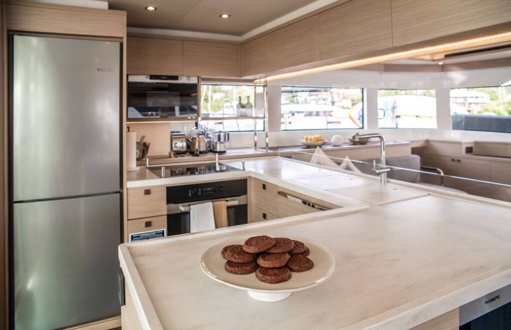 Luxus-Crew-Katamaran MINTED ONE, Baujahr 2026, liegt vor Anker in Caribbean Virgin Islands (US/BVI). Sie verfügt über 4 Kabinen und bietet Platz für 8 Personen.
